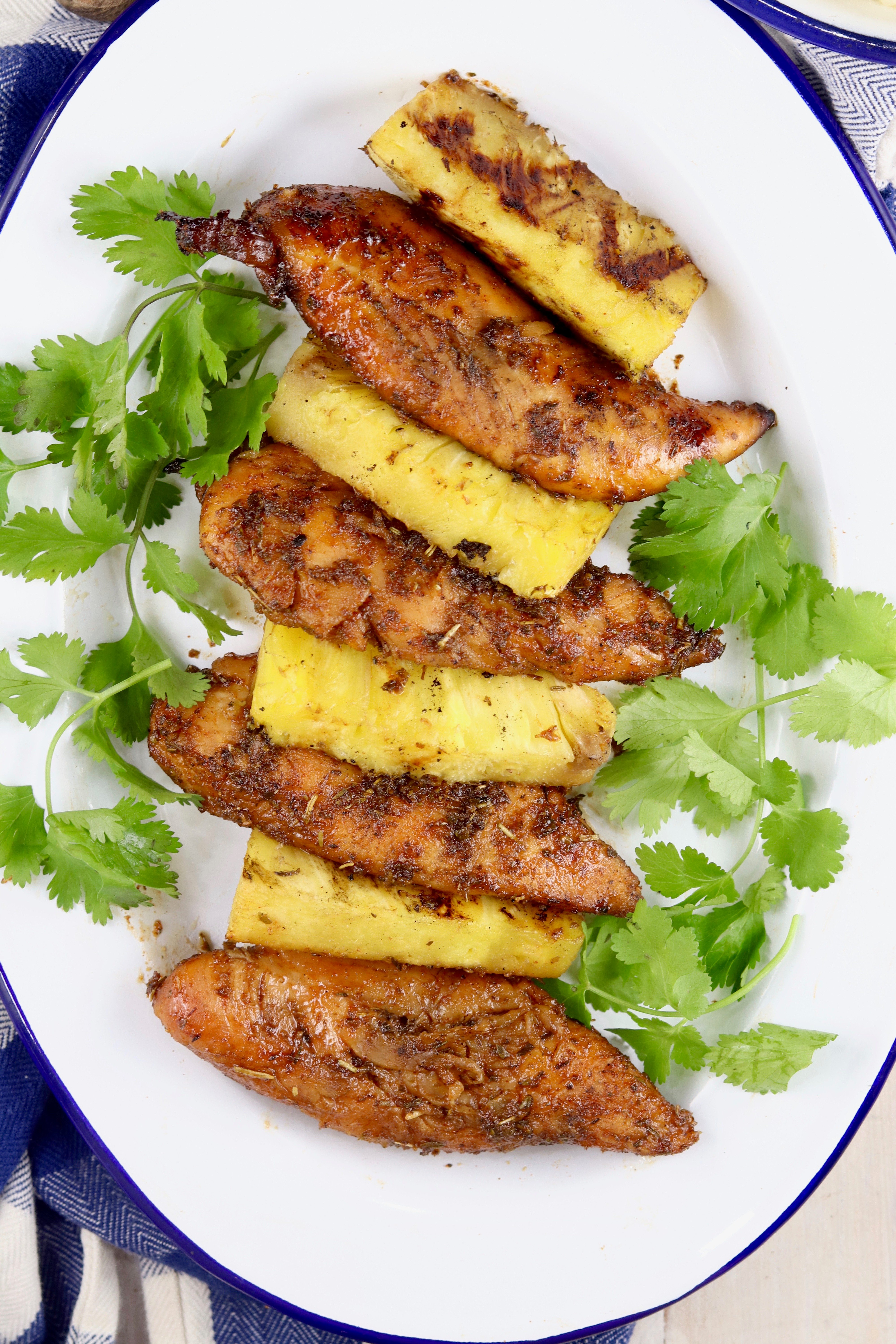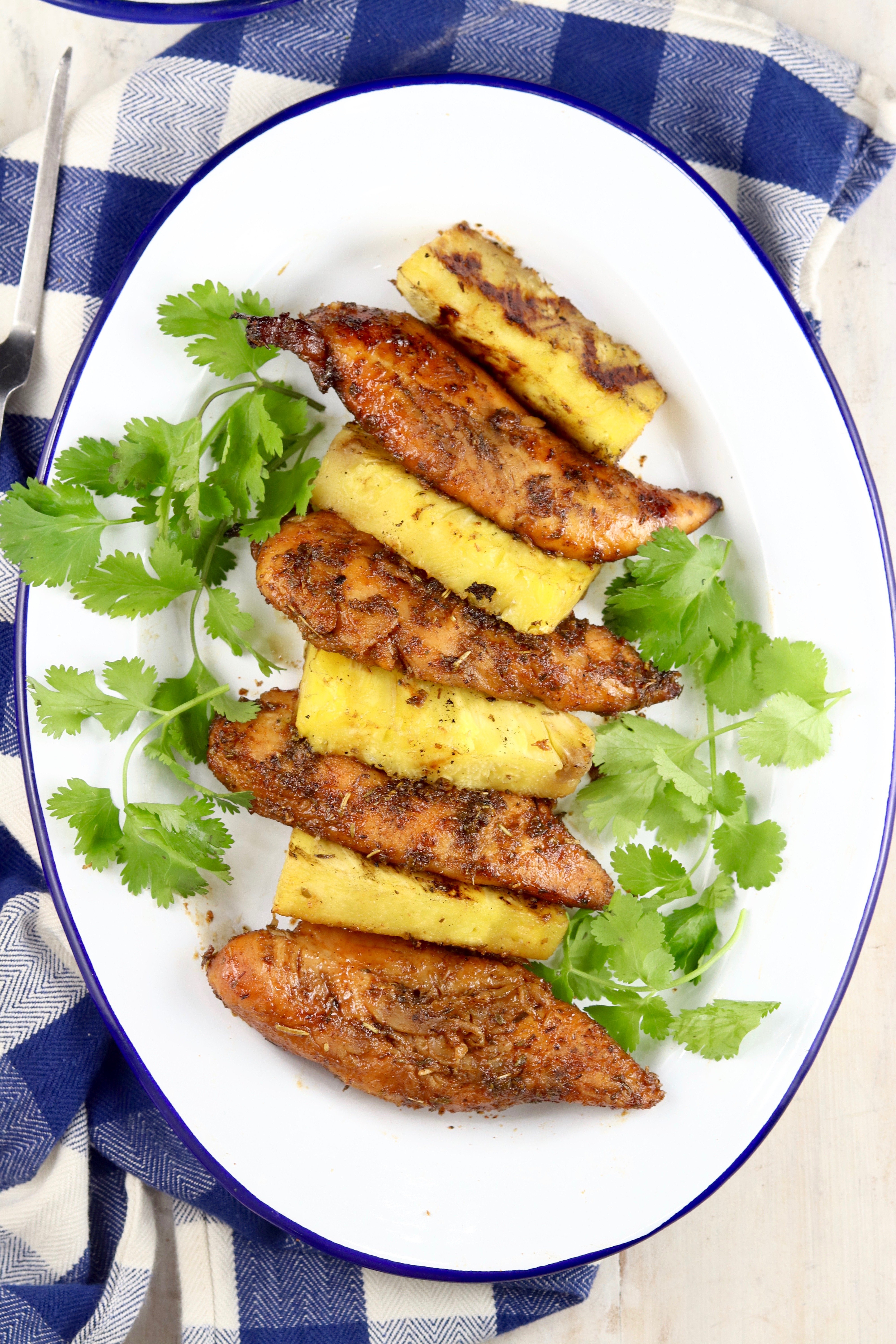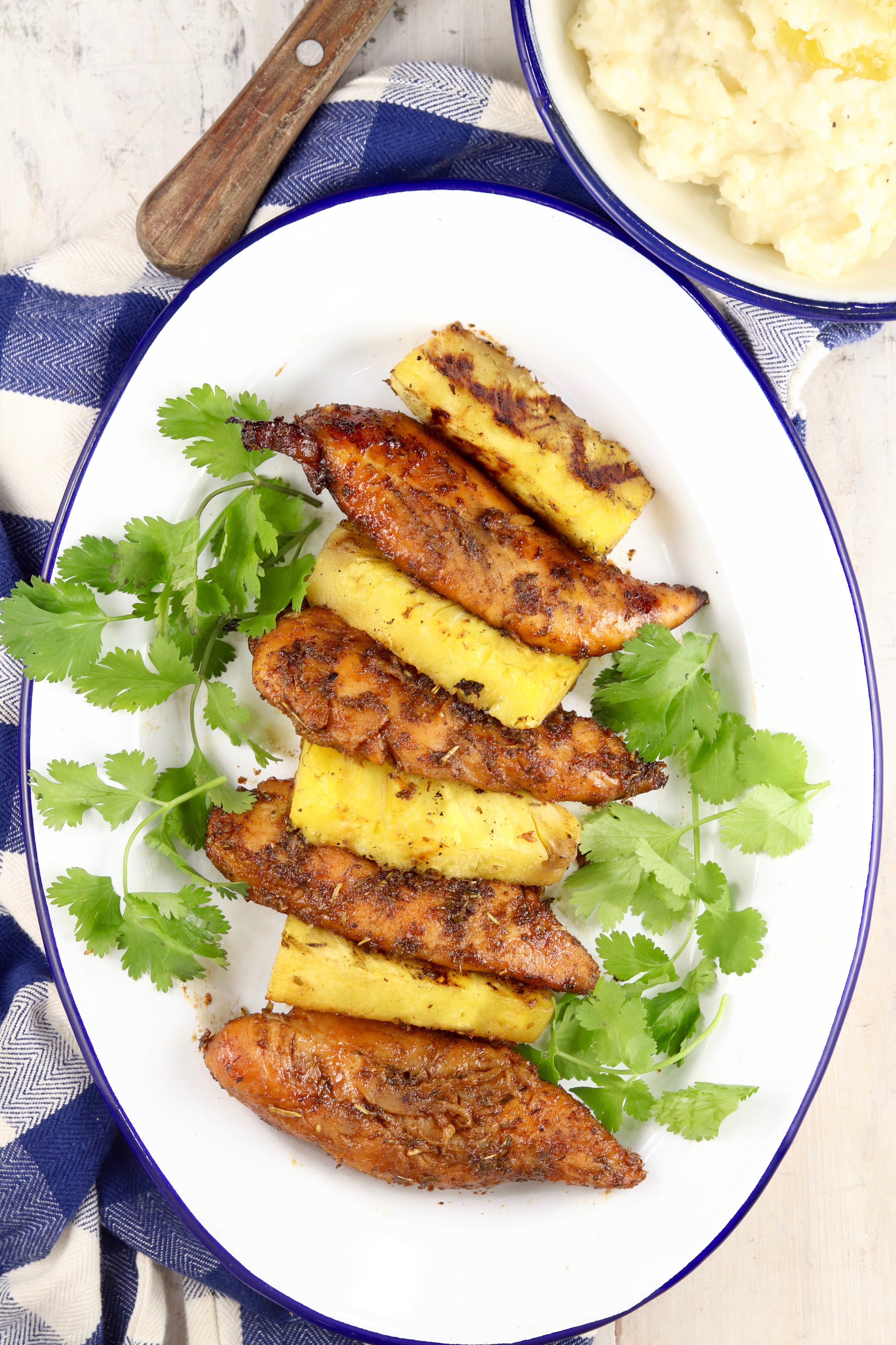 - Serve chicken with grilled pineapple.