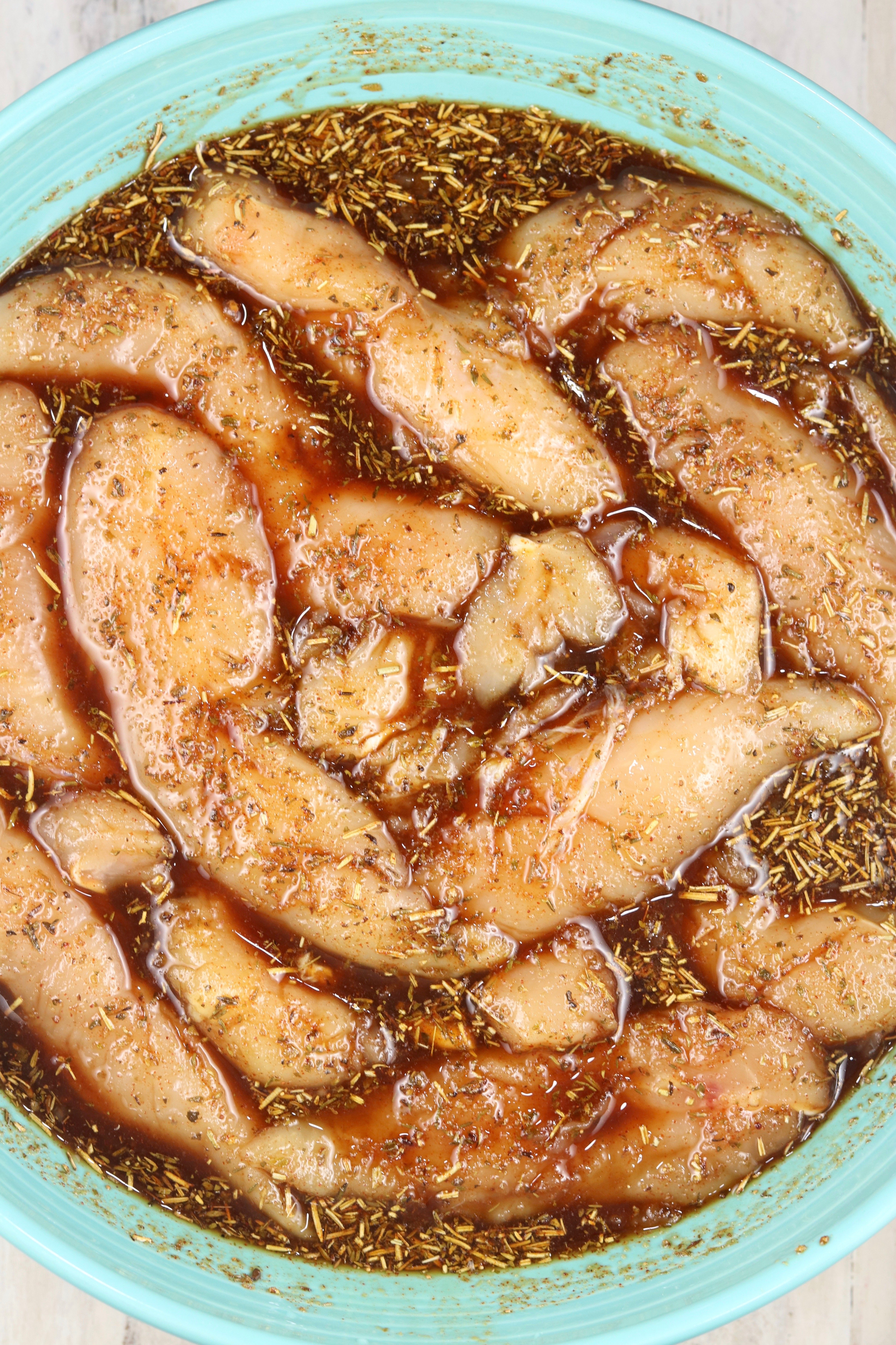 - Add chicken to a bowl and pour marinade over the top. Stir well until evenly coated. Cover and refrigerate at least one hour our up to 12 hours.