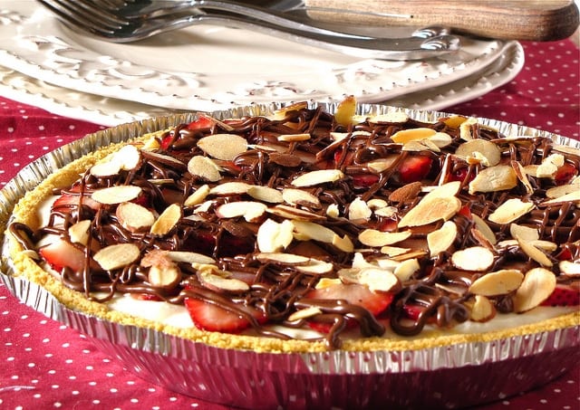 Classic Cream Cheese Pie is my favorite and I know you will love the topping of strawberries, toasted almonds and Nutella!  This is the most requested pie at all of our family get togethers.