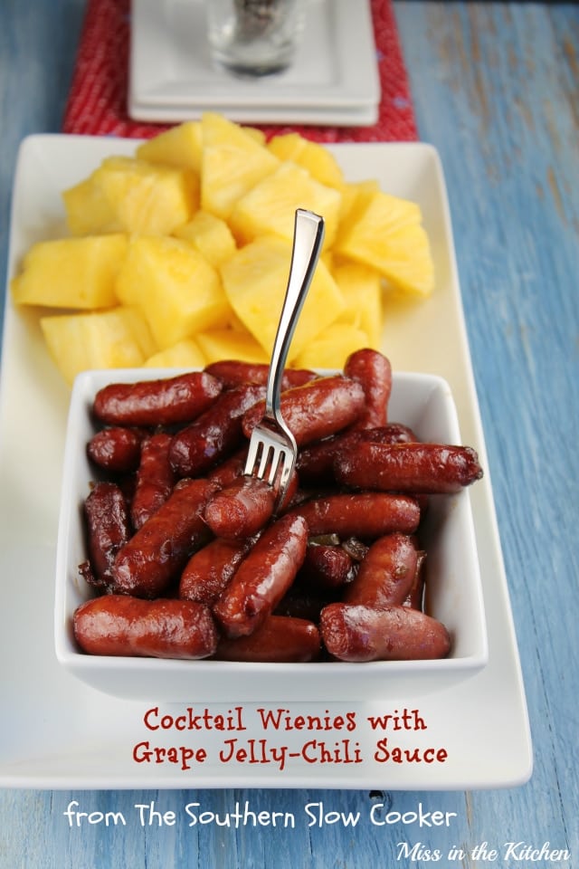 Cocktail Wienies with Grape Jelly-Chili Sauce from The Southern Slow Cooker a tasty snack perfect for game day or family gatherings!