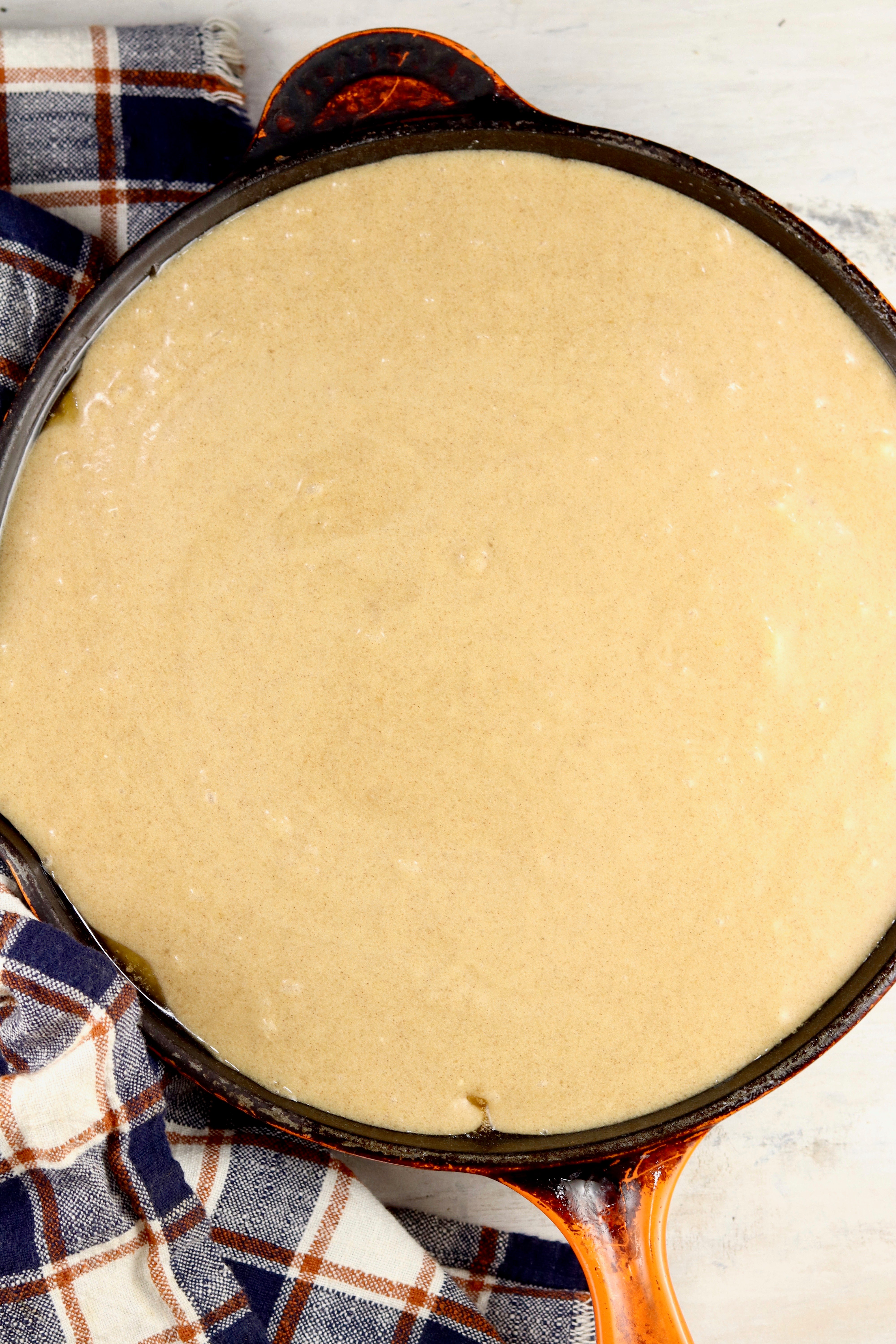 - If you don’t have a cast iron skillet, a 9″ x 9″ square or 9 inch round cake pan will work. You will just make your butter and brown sugar mixture in a saucepan and pour into the baking pan.