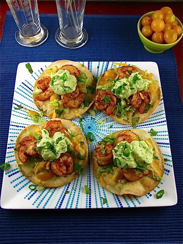 Avocado Crema Over Shrimp Tostadas ~ Healthy Summer Lunch
