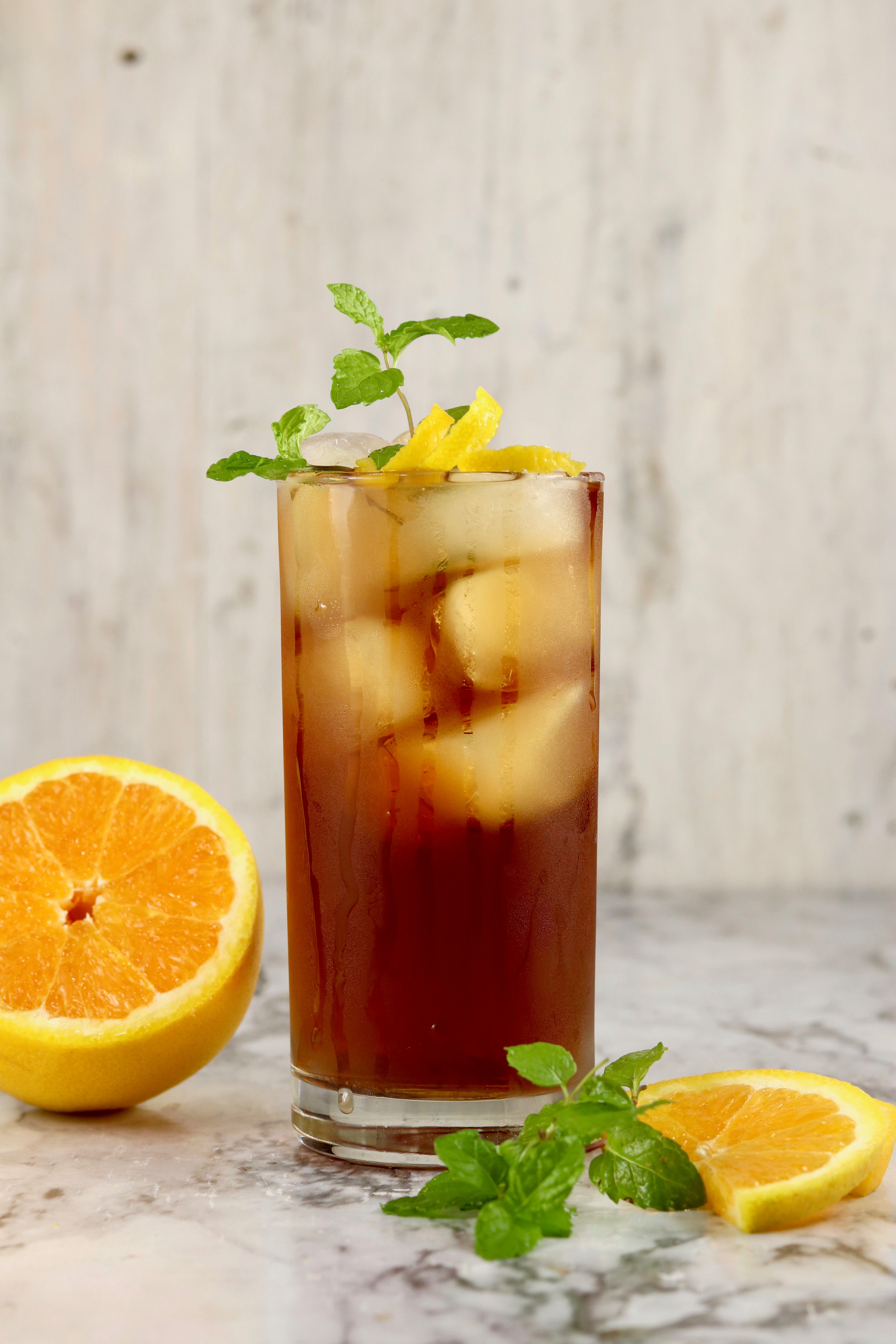 - Garnish with orange or lemon curls and fresh mint if desired.