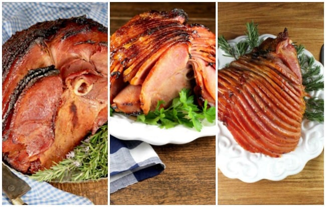 Easy Brown Sugar Glazed Ham is a classic for any holiday meal with pineapple juice, brown sugar and warm spices. Peach and Ginger Glazed Ham is one of my all- time favorites. It’s sticky sweet made with peach jam, orange juice, ginger and garlic. Maple Dijon Rosemary and Glazed Ham is super simple and always a hit with the crowd.