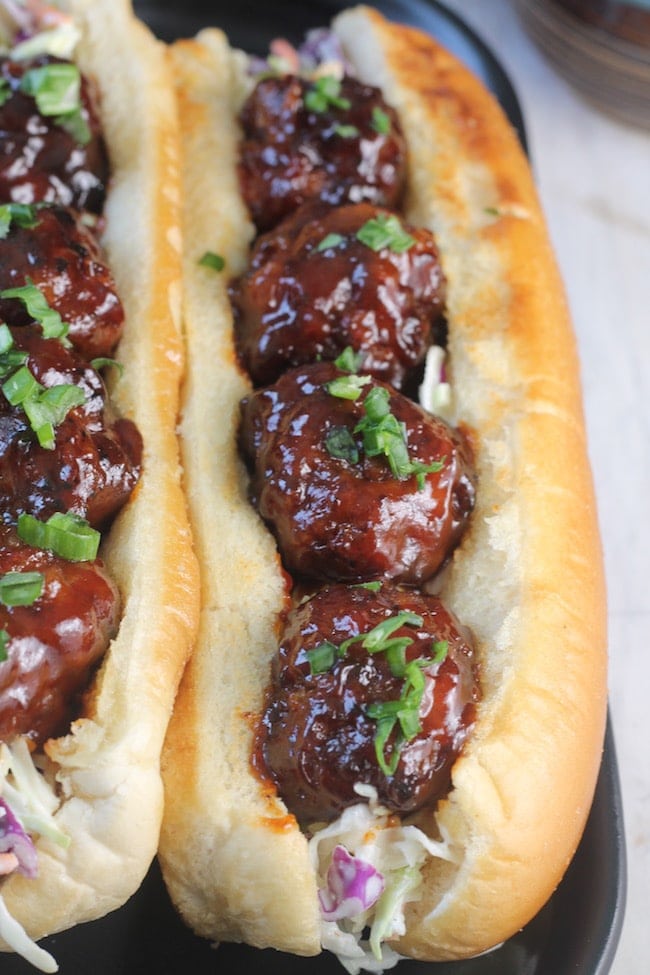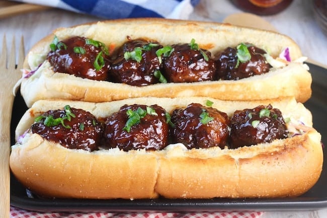 Barbecue Meatball Hoagies are the perfect meal to feed a hungry crowd. You can make the meatballs ahead of time and add them with the sauce in the crockpot to keep them warm until ready to serve.