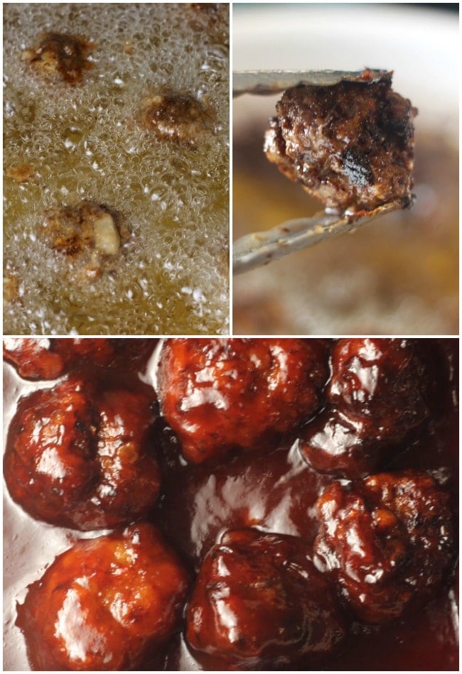 - Drain meatballs as you remove them from the oil and place into barbecue sauce.
