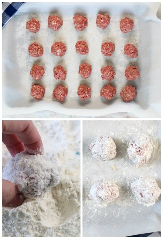 I think the flour seals all of the moisture of the meatball and makes the outside just perfectly crisp and the most amazing texture.