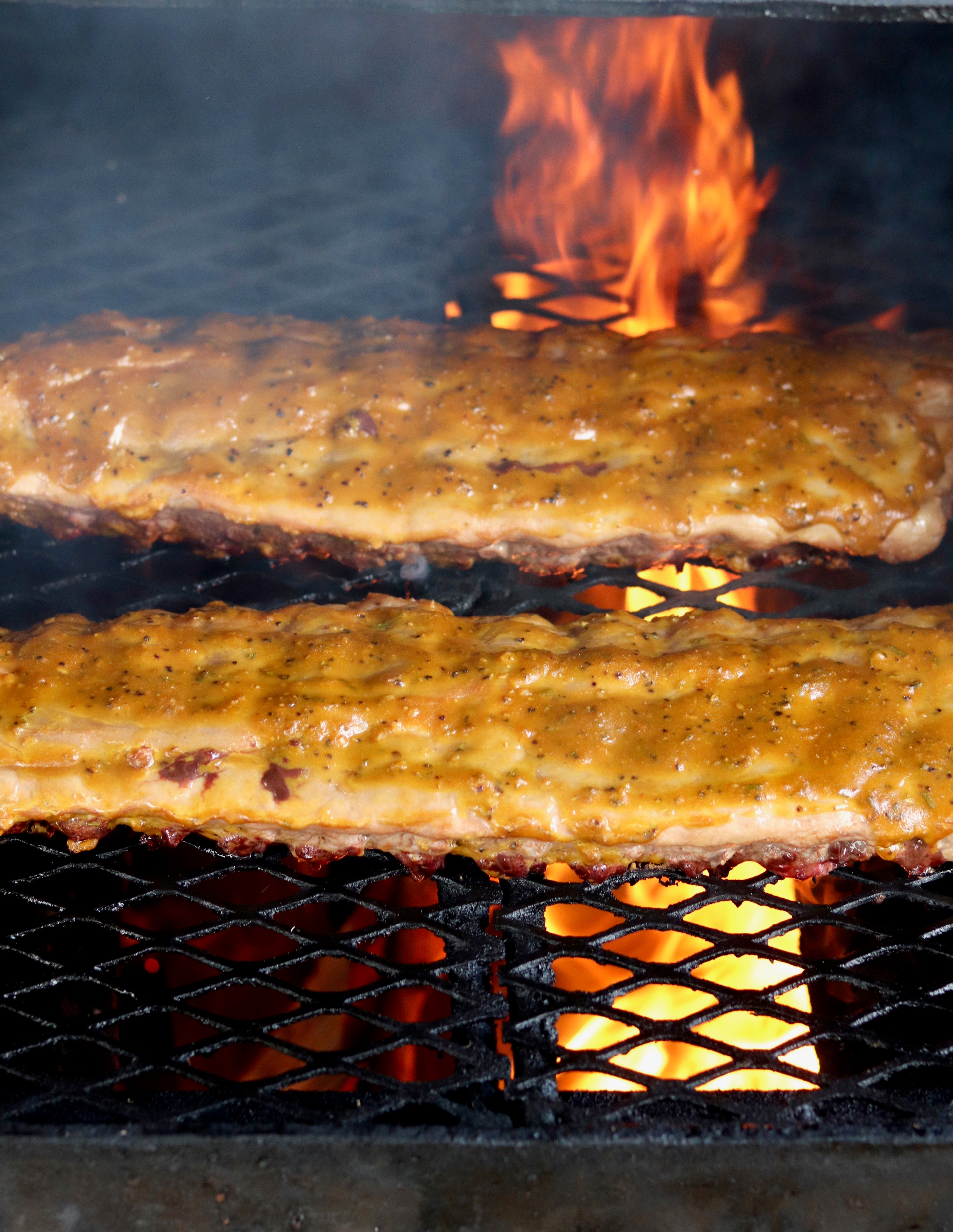 Baby back ribs are my favorite on the grill. We use hickory to give them that delicious smoky flavor and our homemade Mustard BBQ Sauce for a sweet and savory tang that you are going to find irresistible.