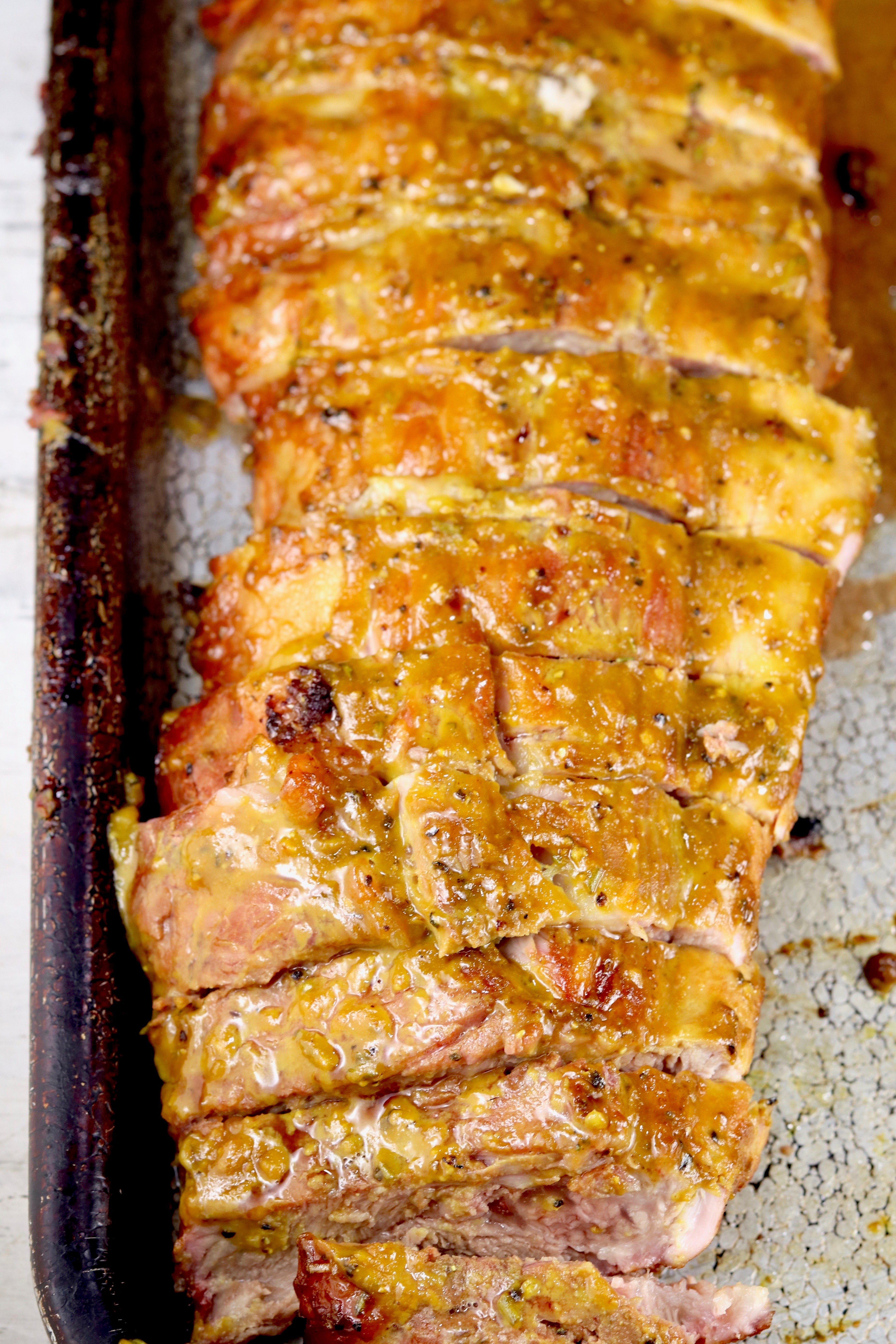 The homemade Mustard BBQ Sauce is sweet and savory with brown sugar, onion flakes and rosemary. It really caramelizes on the ribs for an amazing flavor combination. It just takes a few minutes to mix up this amazing sauce and you’ll be loving it on more than just these ribs!