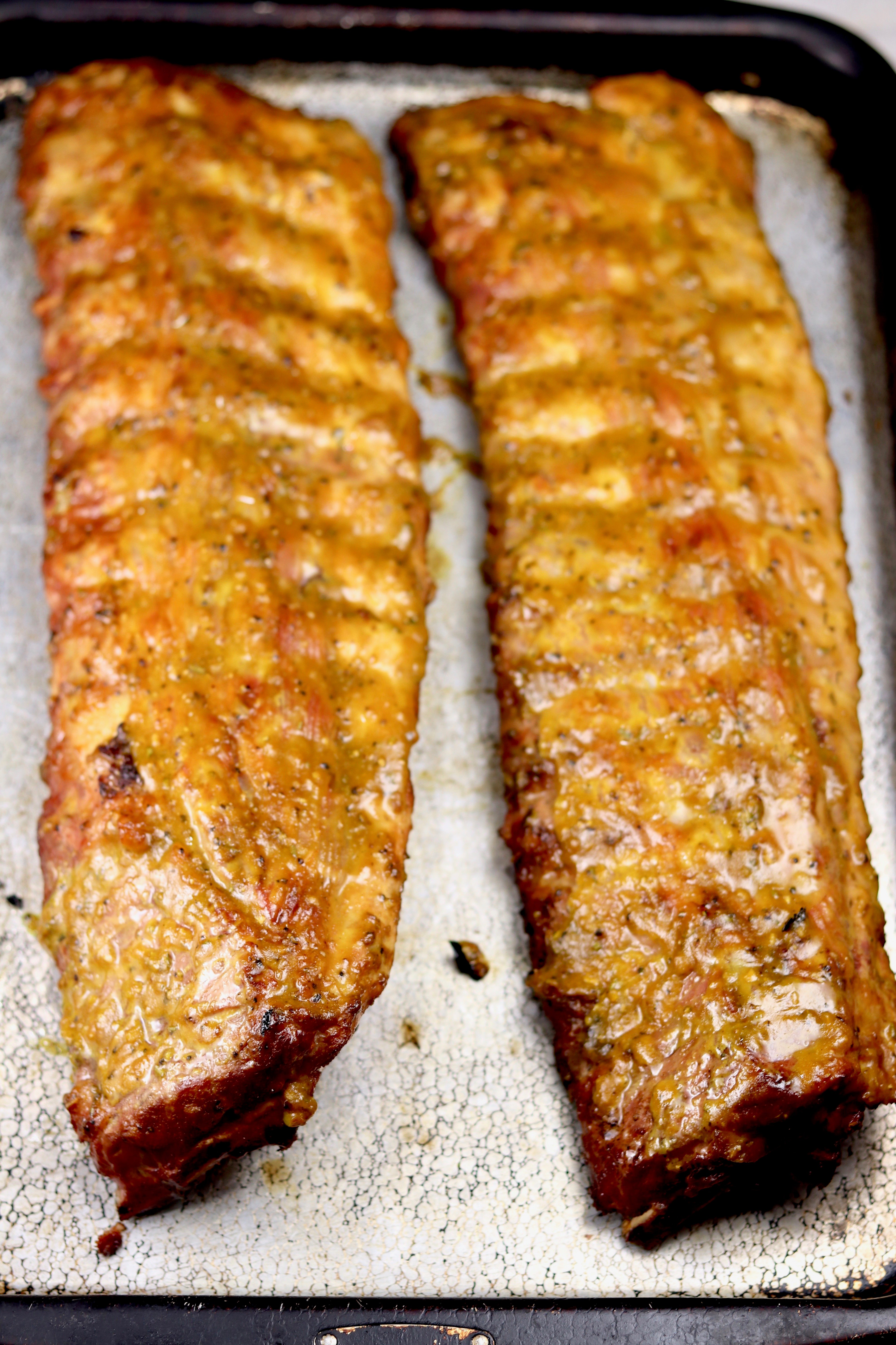 We like to grill 2 racks of ribs at once so that we have them for an easy meal later in the week. Grilling on the weekend is my favorite kind of meal prep.