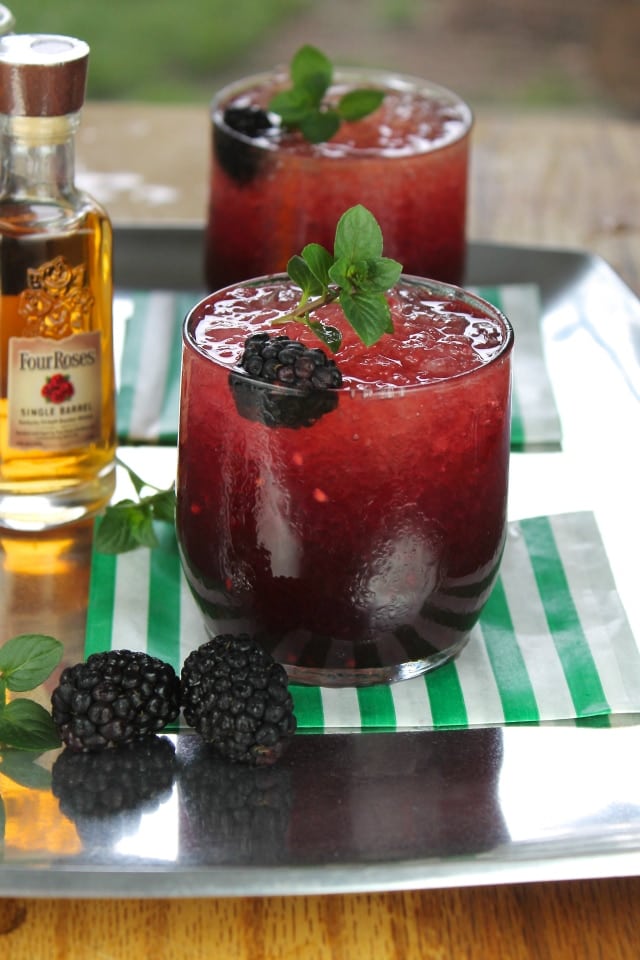 I added the fresh blackberries and a few sprigs of mint to my sugar water, simmered, cooled and holy moly was it ever good. When added to crushed ice and a nice shot of Four Roses Bourbon it will blow your cocktail loving mind.