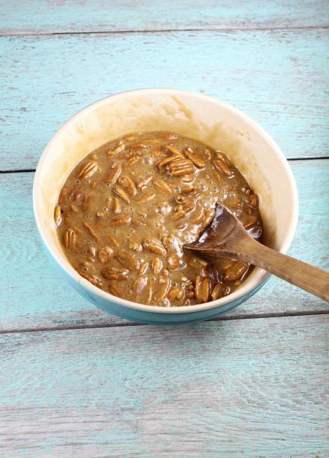 - Fold in pecans until well combined.