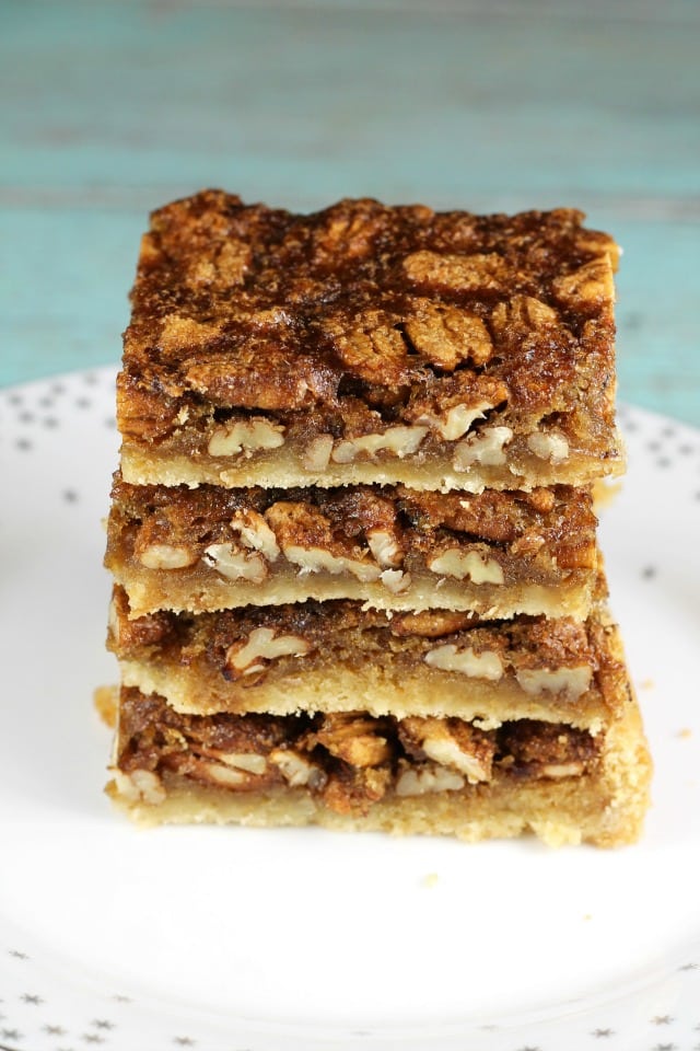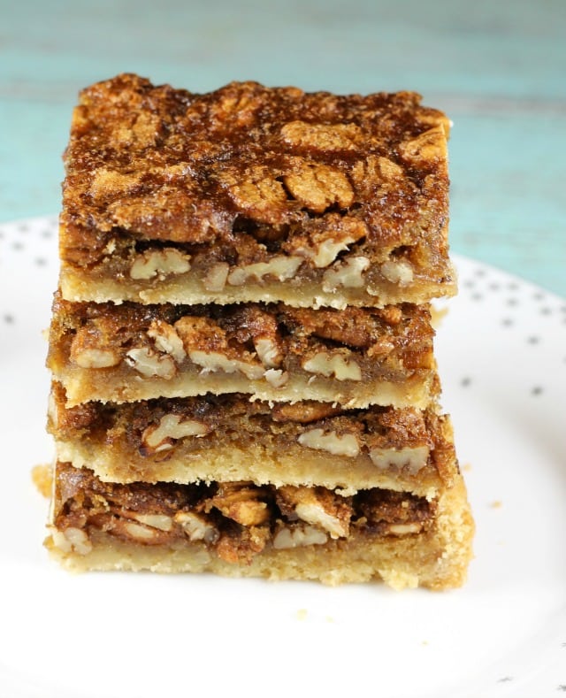 These Brown Sugar Pecan Pie Bars are sure to earn a spot on your holiday goodie list. We just can’t get enough of them. I have made them 3 times in the last week!