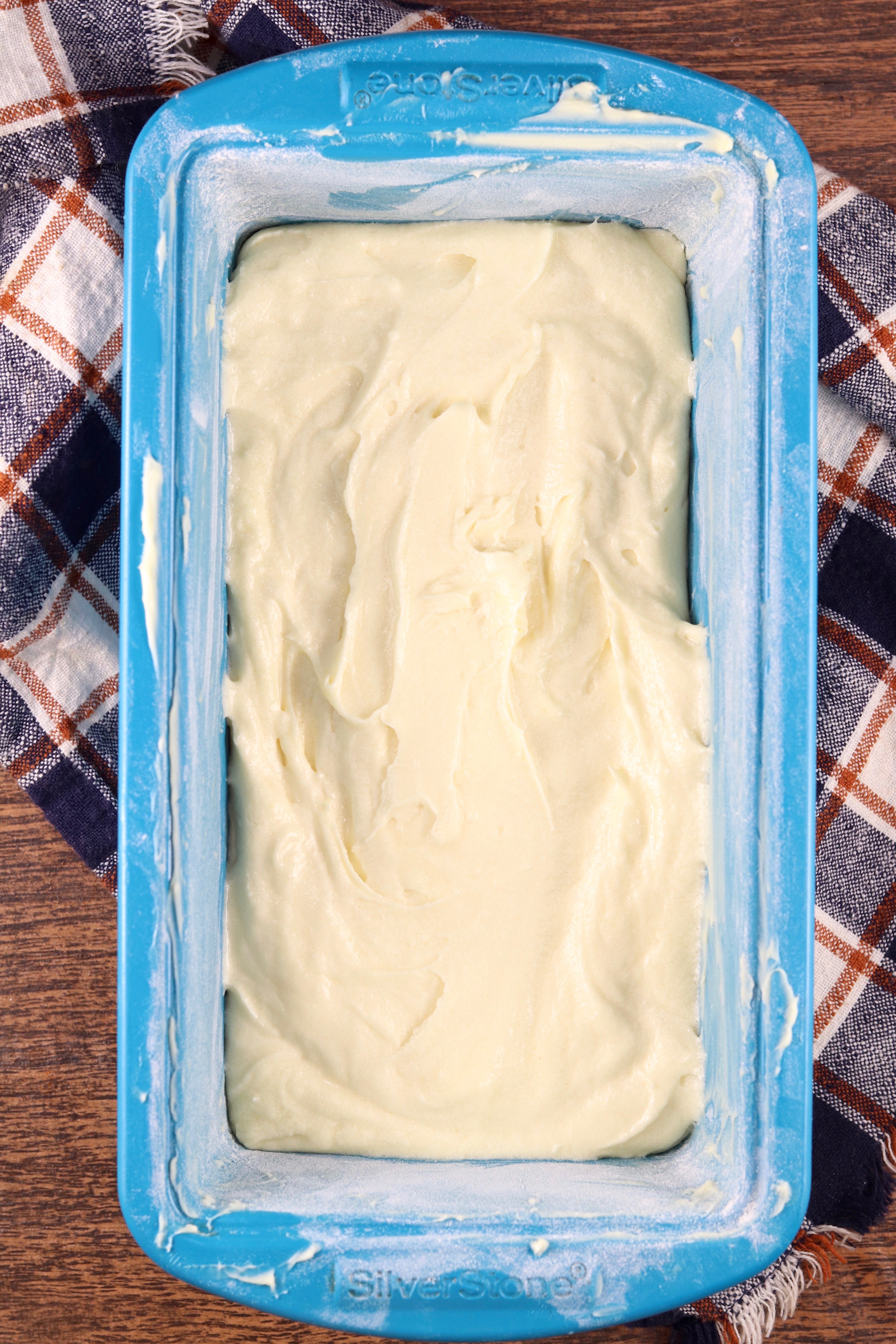 - Pour the batter into the loaf pan and bake for 45-55 minutes, or until golden brown.