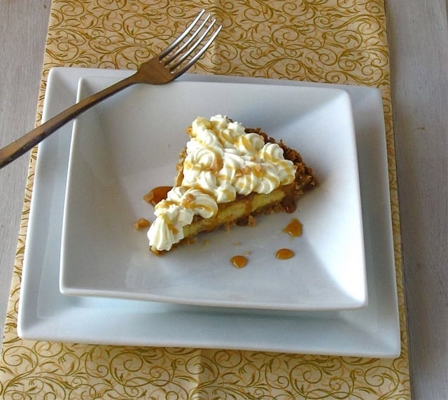 - Pour caramel over pie and cool on the counter for 30 minutes. Place in refrigerator and cool 3 hours or until completely chilled.