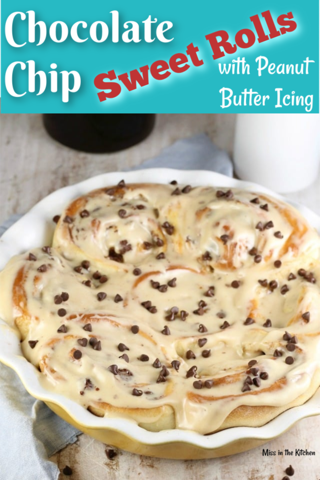 Chocolate Chip Sweet Rolls with Peanut Butter Icing are so decadent and delicious and just perfect for a weekend at home! Serve these up with a steaming cup of coffee or a tall glass of milk.
