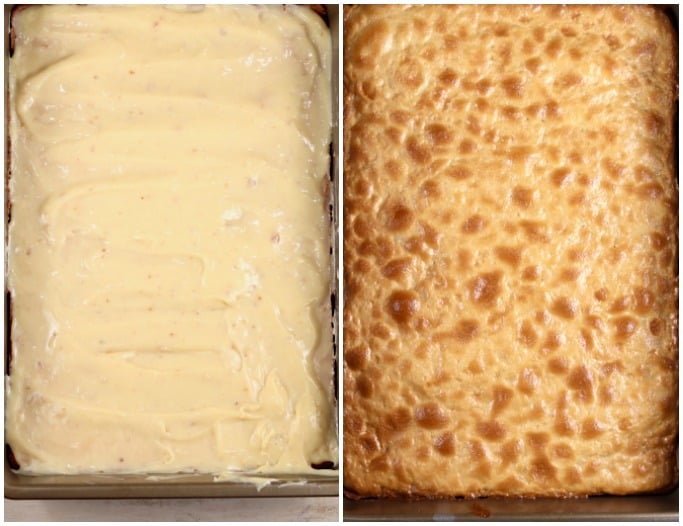- Pour mixture over baked crust and return to oven to bake for 12 minutes.