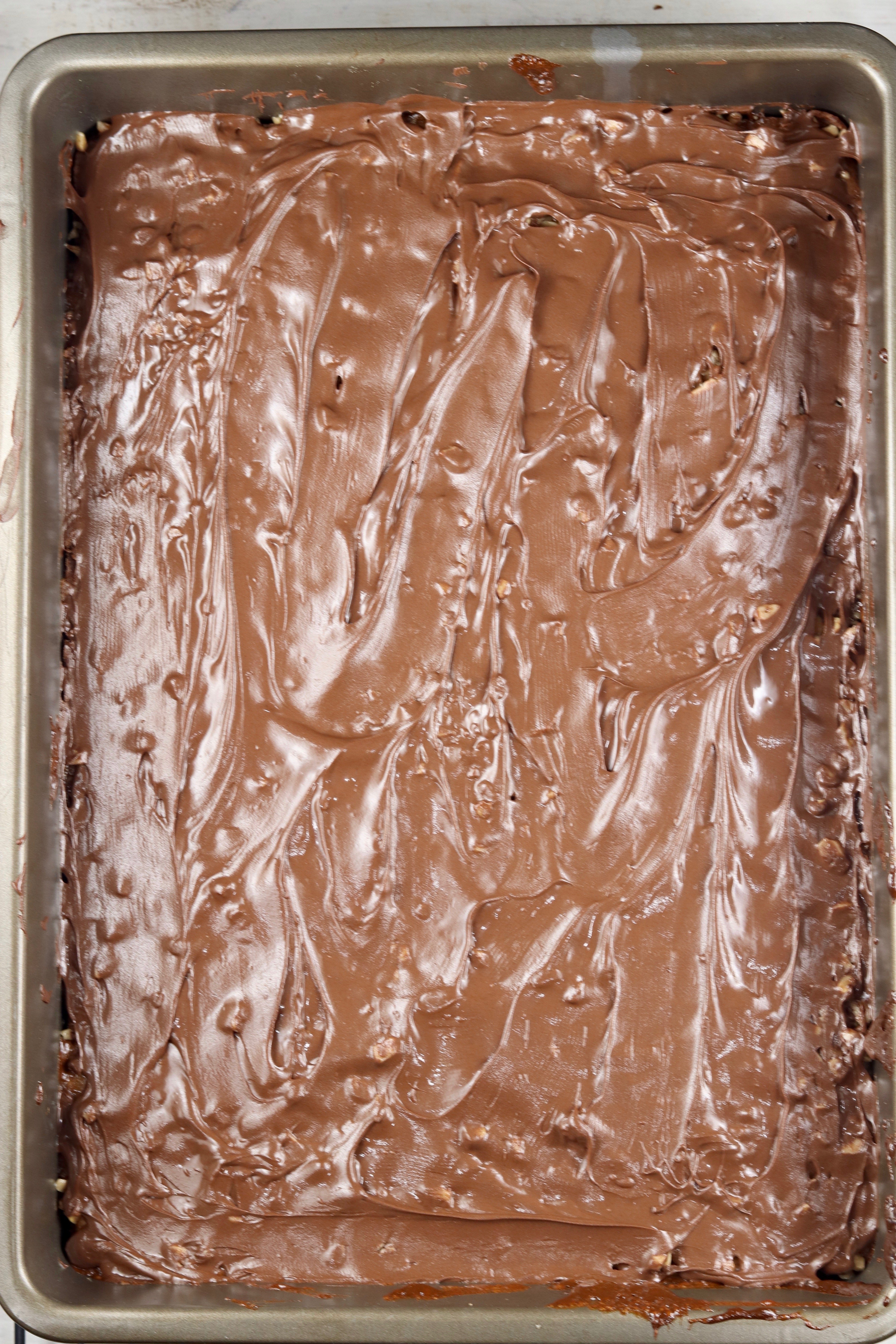- Spread chocolate into an even layer. Cool completely on a wire rack.