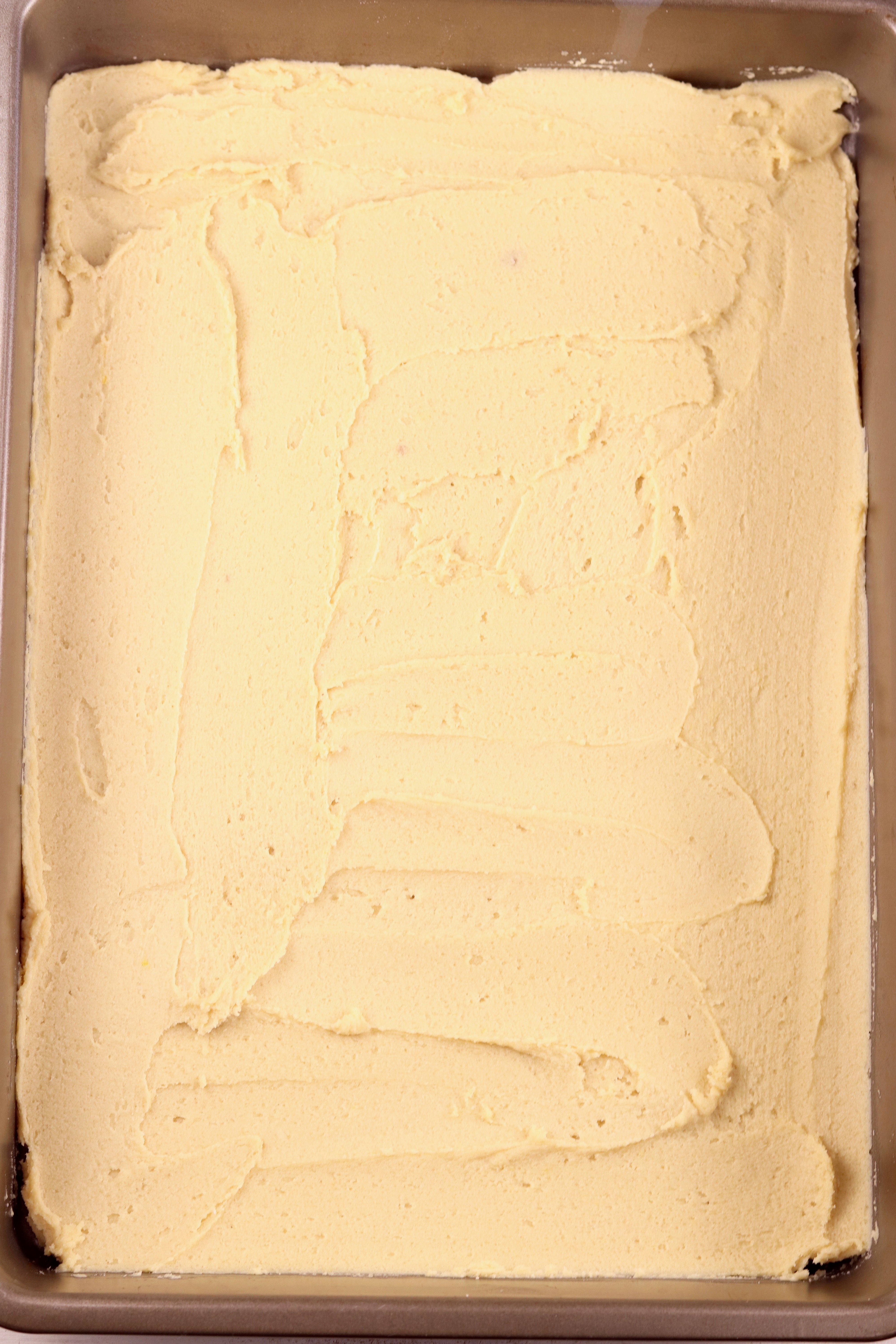 - Press into a 9 x 13- inch baking pan in an even layer.