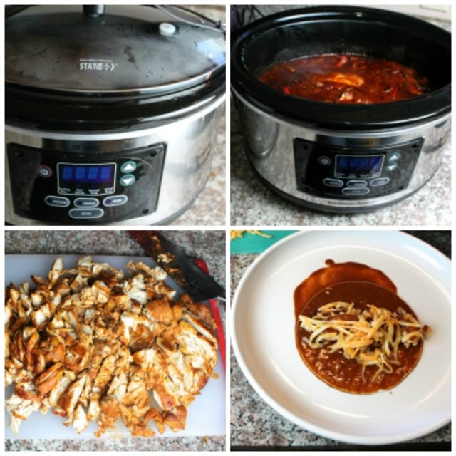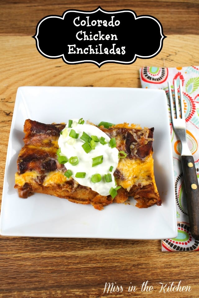 Colorado Chicken Enchiladas with slow simmered chicken made in the slow cooker with homemade red chile sauce!