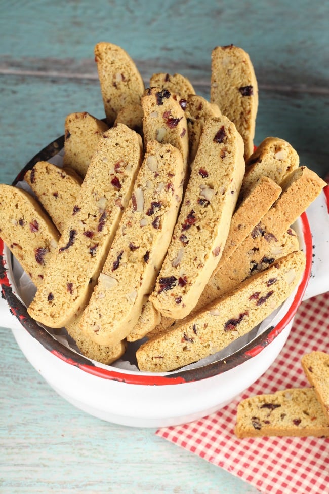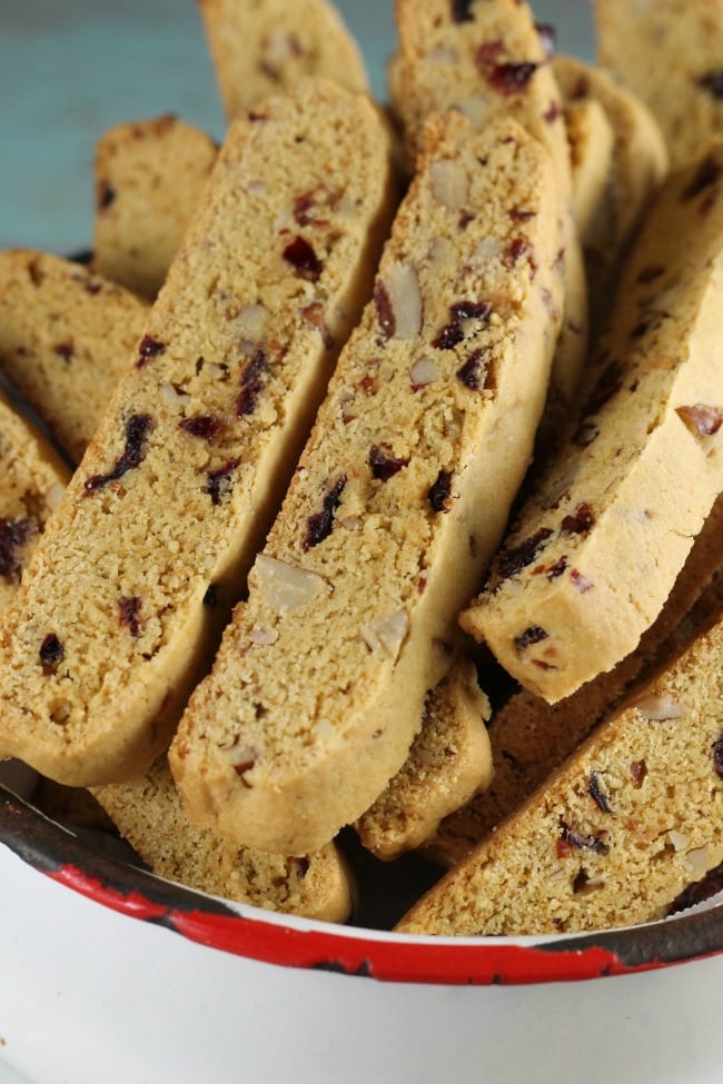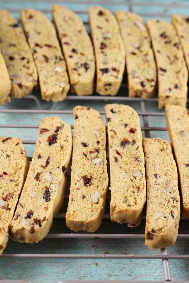 Biscotti isn’t overly sweet and I could just munch on them any time of day. It’s hard to pass the cookie jar without grabbing one or two.