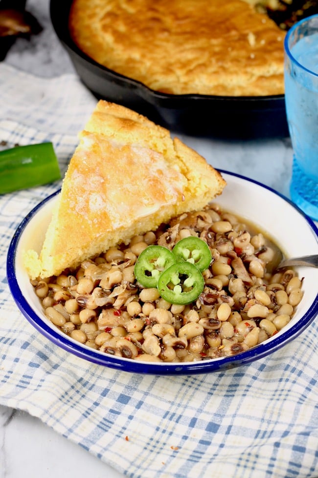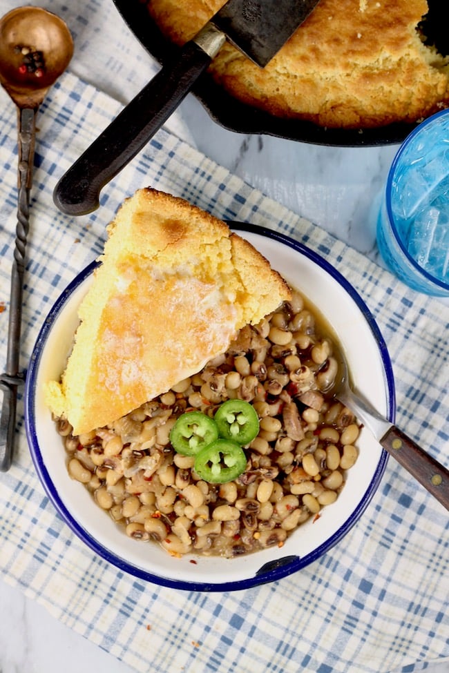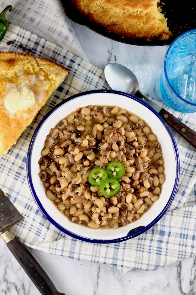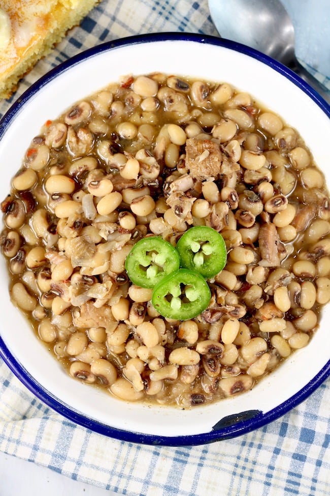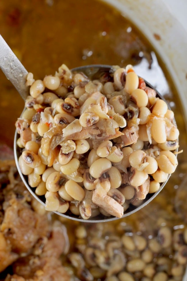 This is no ordinary tasteless pot of peas, the smoky ham, turkey and bacon gives these peas the most amazing flavor. Of course if you don’t have all three, any smoked meat will give your black eyed peas tremendous flavor.