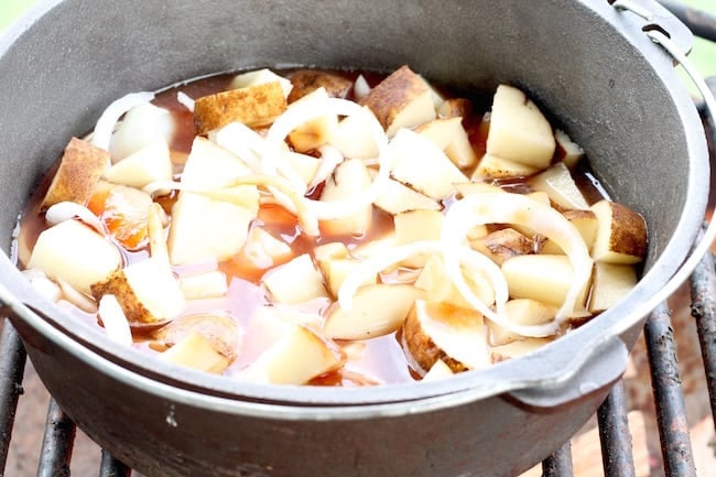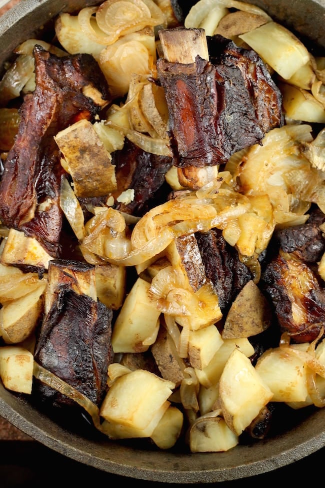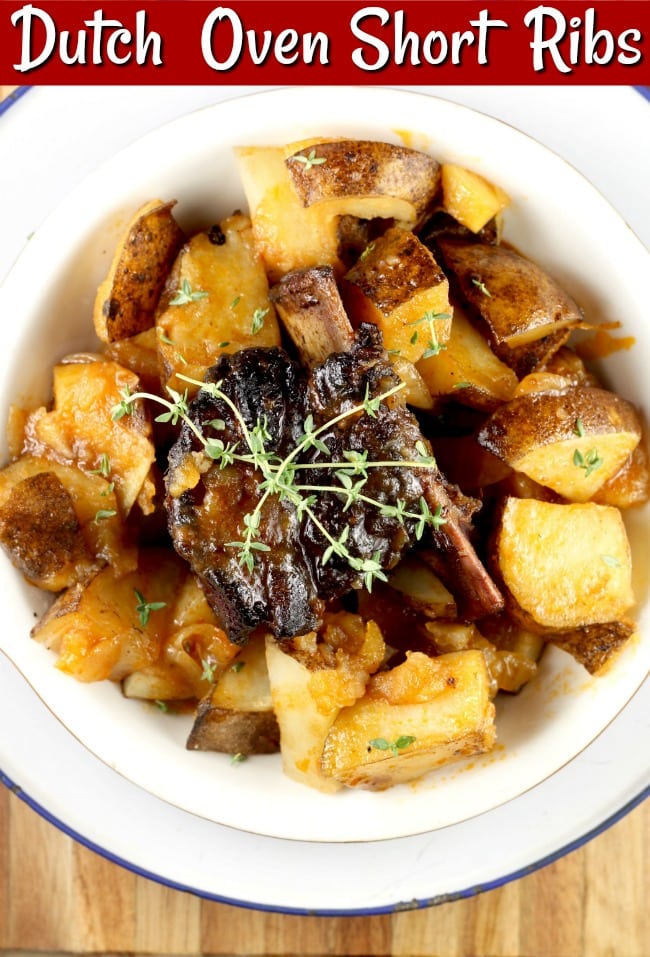 Dutch Oven Short Ribs with potatoes and onions is slow cooked over a campfire or in your oven create the most tender and flavorful beef ribs that you have ever tried. This recipe is surprisingly simple and incredibly delicious!