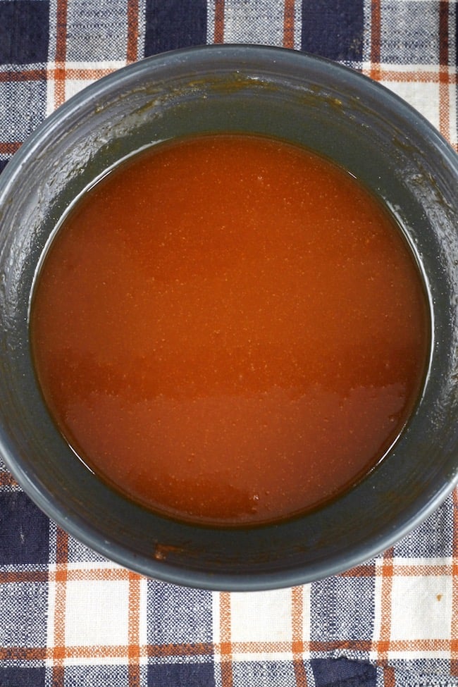 - Mix melted butter, hot sauce, honey, soy sauce & garlic together.