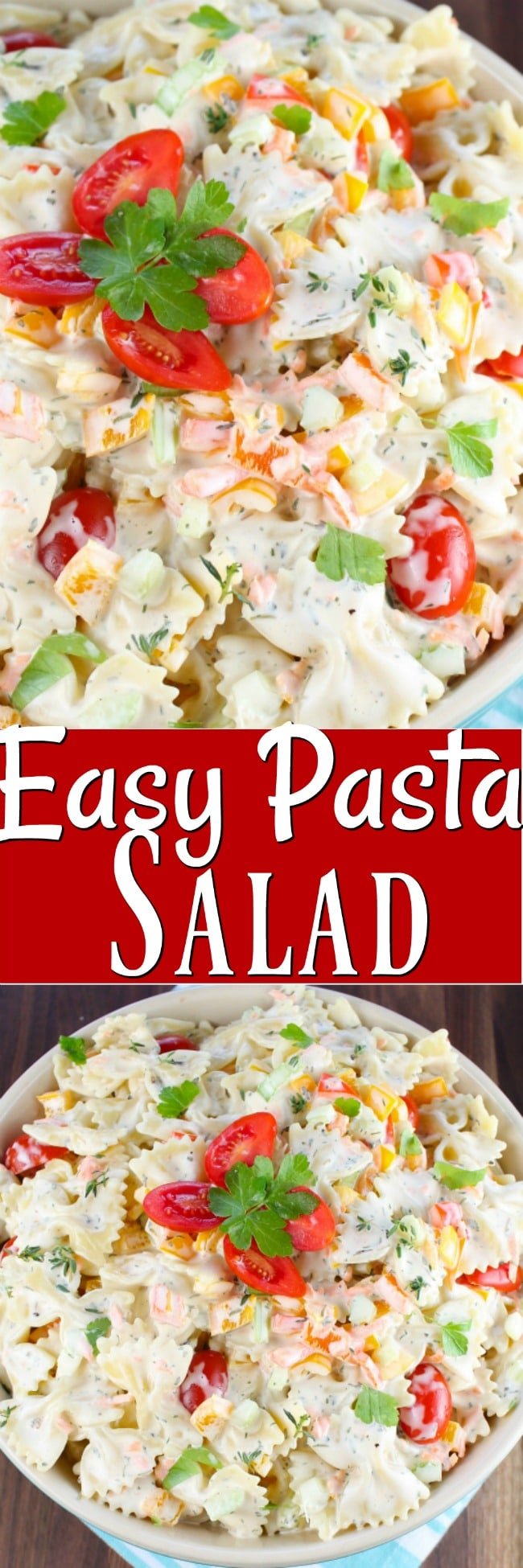 Easy Pasta Salad is one of our favorite summer side dishes bursting with flavor from herbs and crisp vegetables.