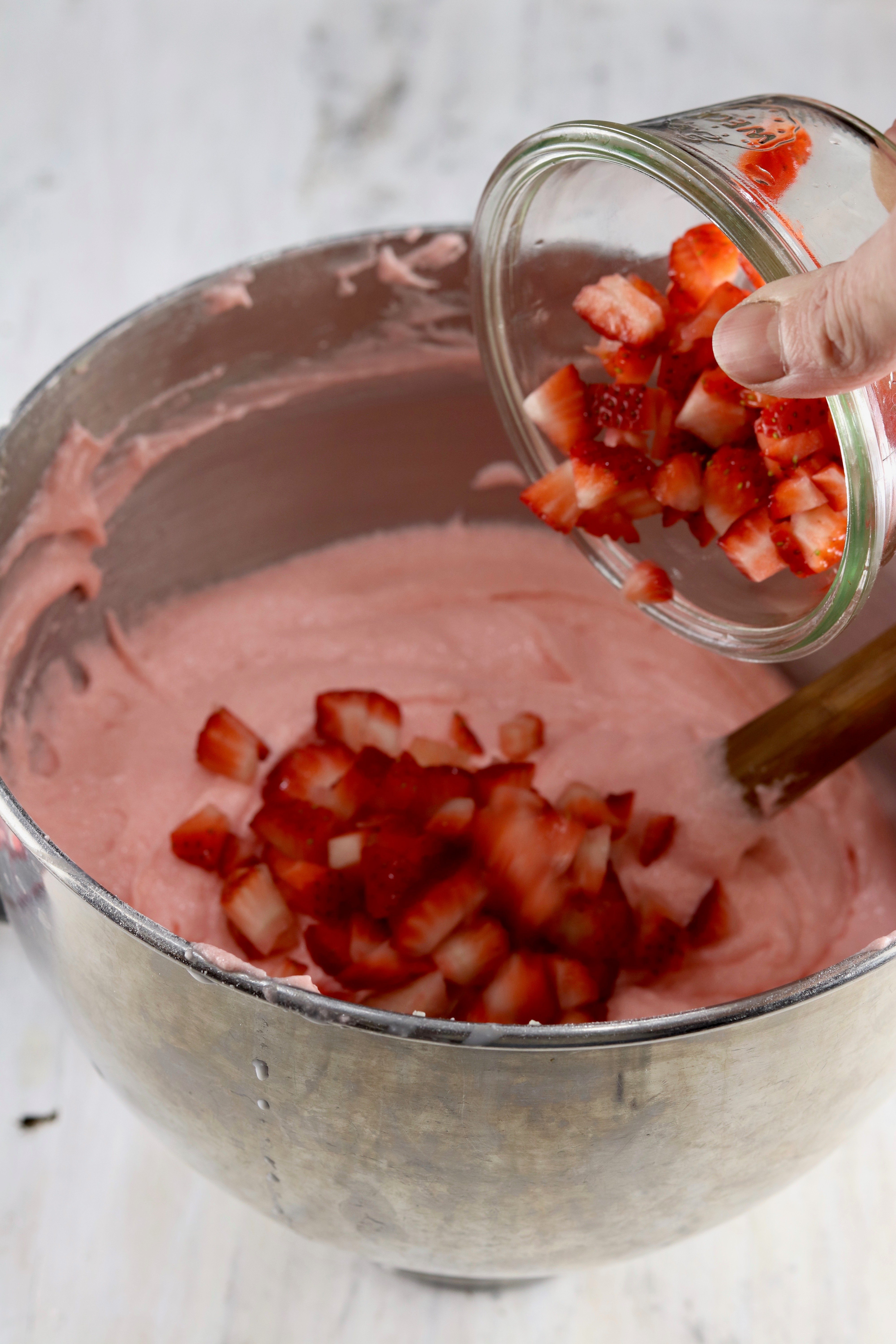 - Fold in strawberries.