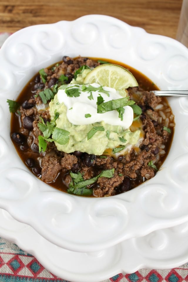 I served mine over rice but the guys ate their chili straight up with a little cheese. It would be great with tortilla chips or Fritos too. What is your must have topping for chili?