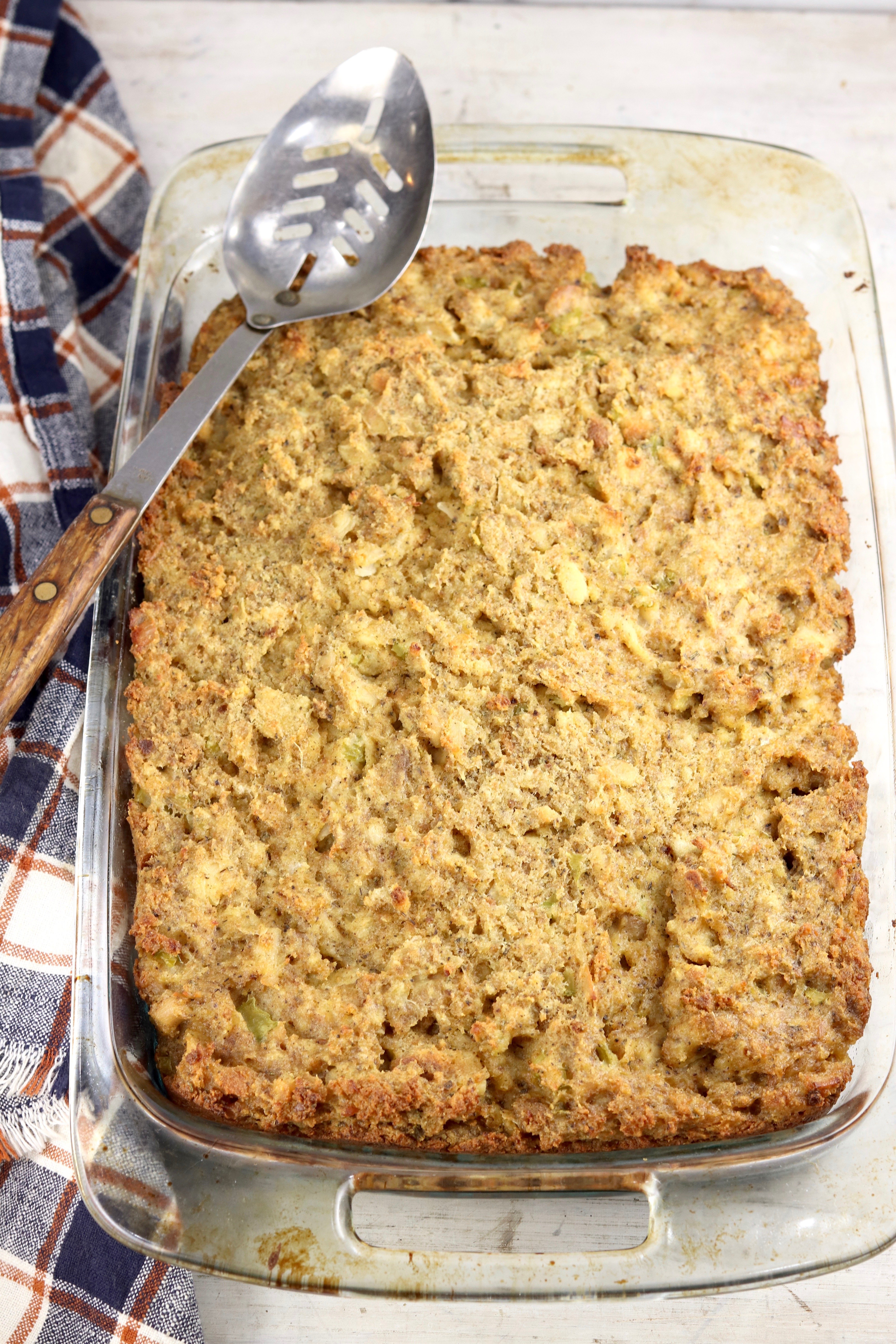Southern Cornbread Dressing is another version that is made without chicken. This cornbread stuffing has a little different texture and is still moist and delicious. As long as there’s dressing, you can’t go wrong.