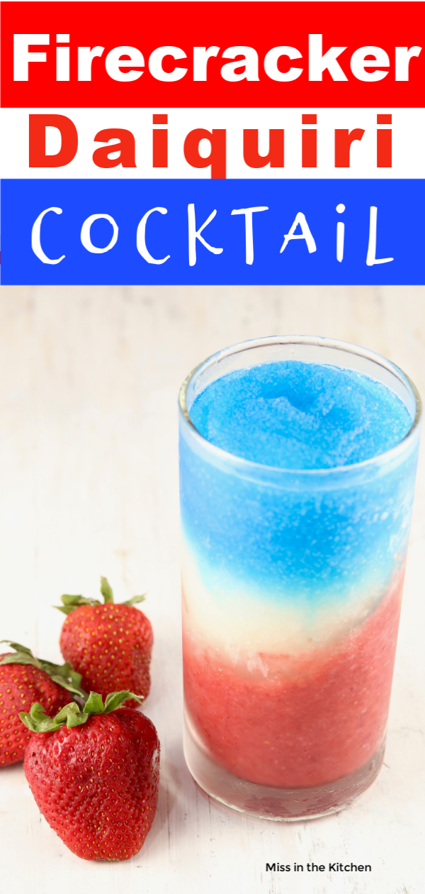 What better way to cool off this summer than with a frozen rum daiquiri. The Firecracker Daiquiri is a layered red, white and blue cocktail that will be the hit of any summer celebration.