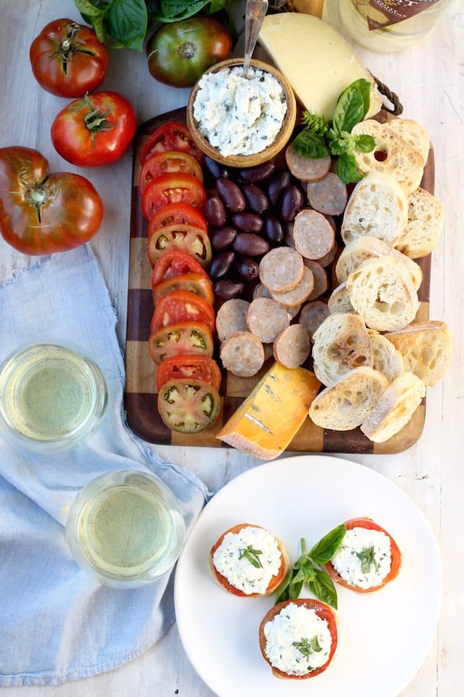 Our garden has slowed down a bit the last few weeks but I’m still getting a few of our gorgeous heirloom tomatoes. They were the perfect addition to the fresh ricotta cheese for an amazing appetizer that comes together in just minutes.