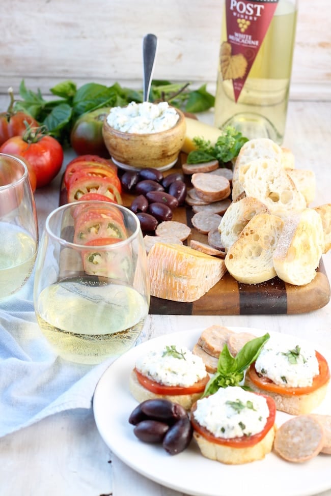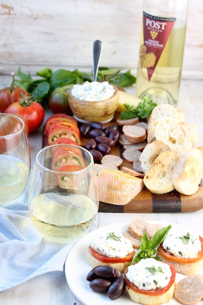 I sliced up my goodies from Lovera’s and put the herbed ricotta together and opened up a bottle of my favorite Muscadine Wine, from Post Winery in Arkansas.