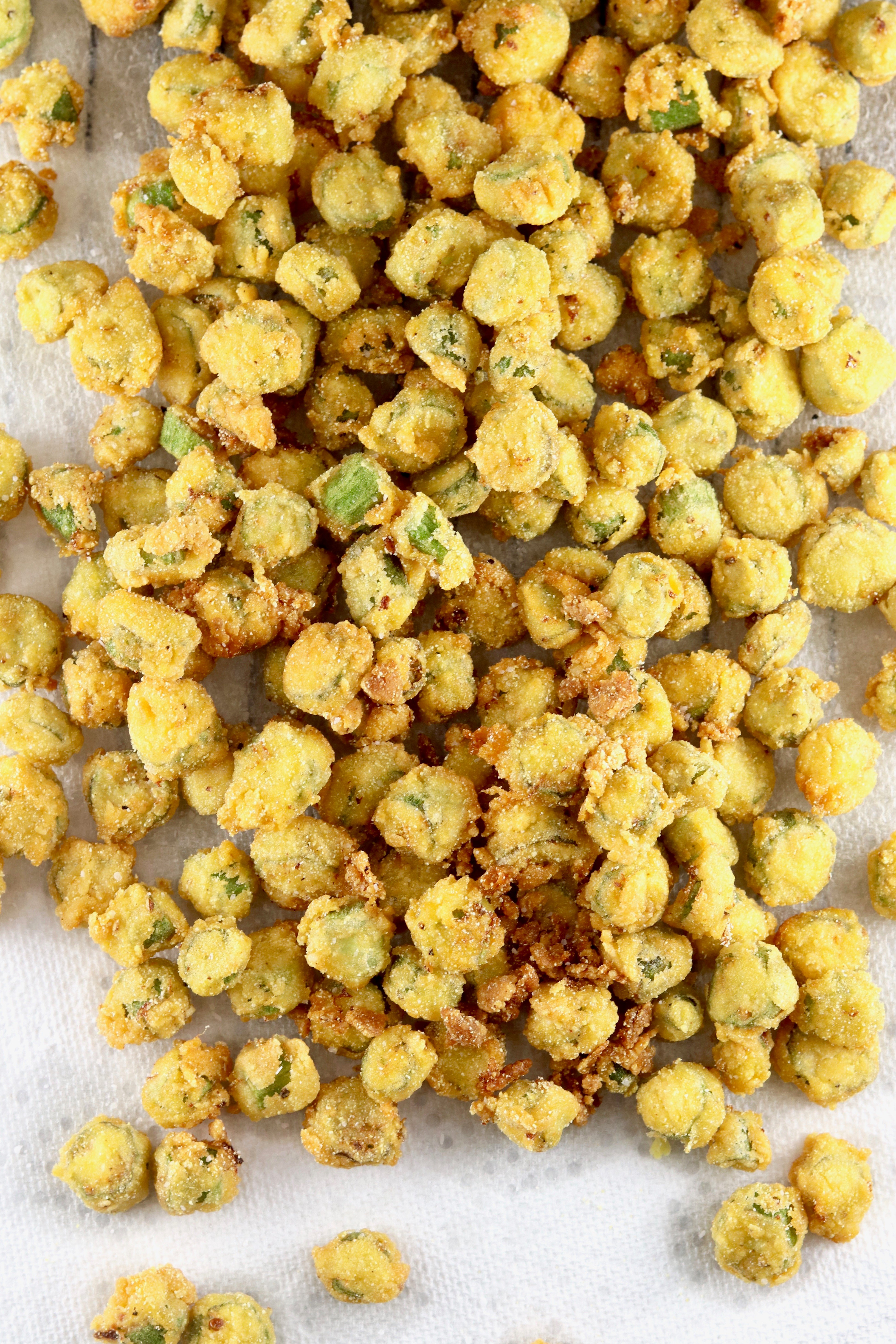 - Sprinkle with a little kosher salt right when you remove the okra from the oil.