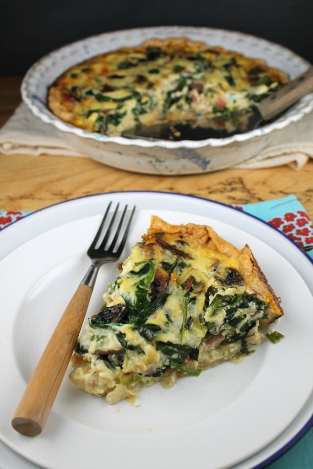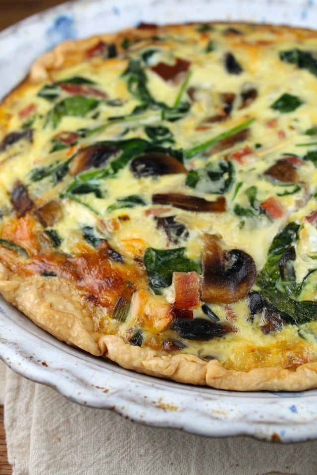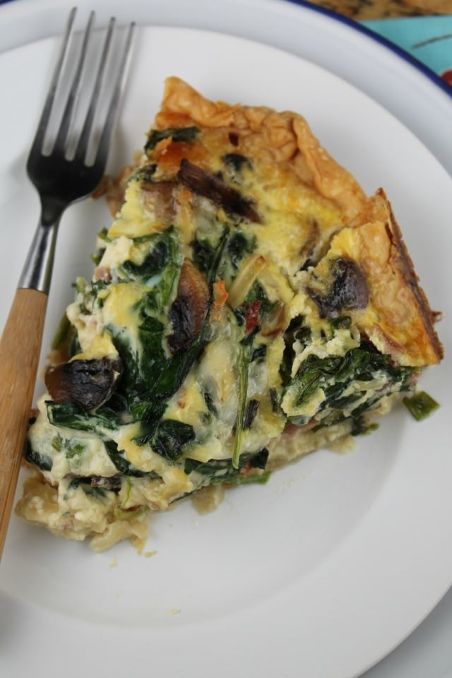 If you have leftovers from a holiday feast like this Easy Brown Sugar Glazed Ham, it’s a delicious flavor combination with the spinach, mushrooms and eggs. Using store bought pie crust makes this a super easy dish to put together and I love it for a busy weeknight.