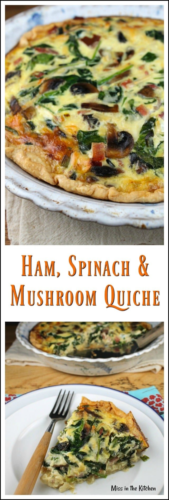 This Ham, Spinach & Mushroom Quiche can easily be adapted to your favorite flavors and what you have in your refrigerator and freezer. It is simple to make and I know it will be a huge hit at your next gathering.