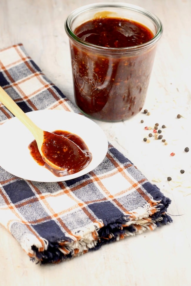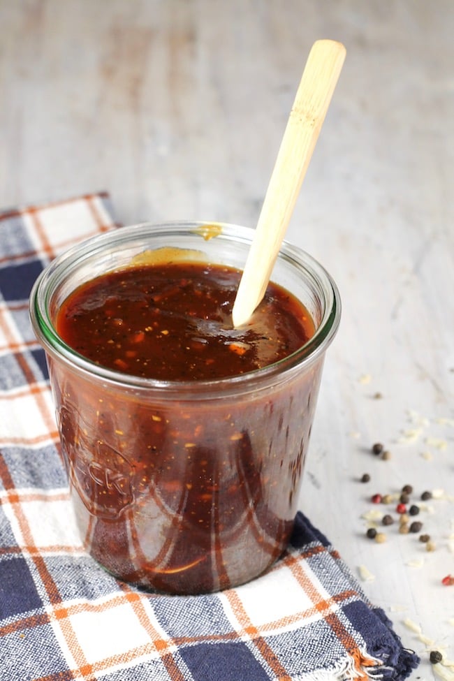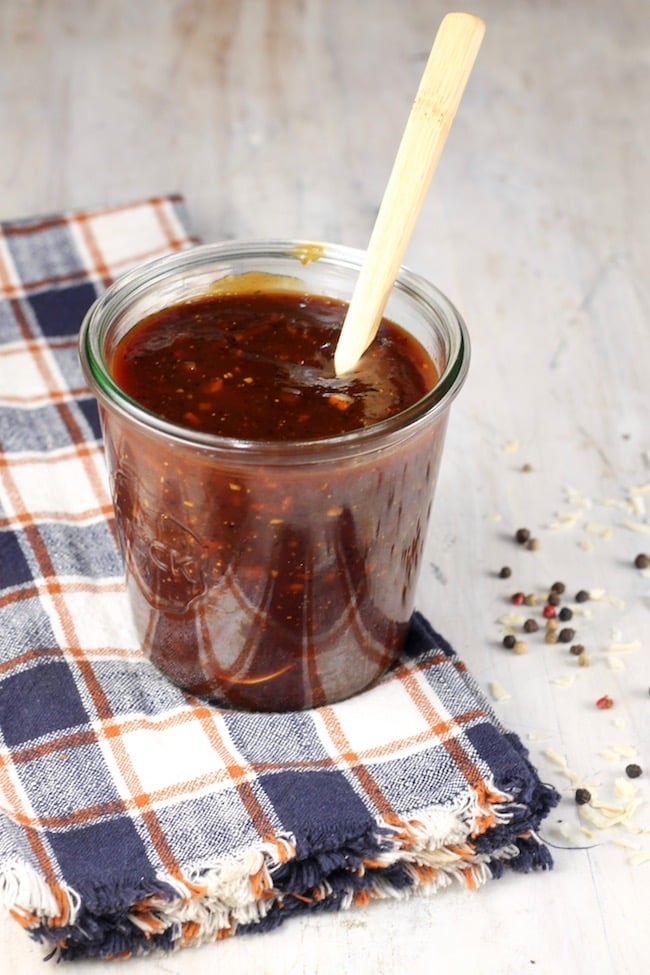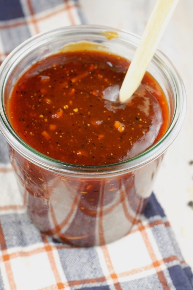 This homemade barbecue sauce is my husband’s recipe and it’s perfectly thick and delicious. Great for dipping or for brushing over meat on the grill.