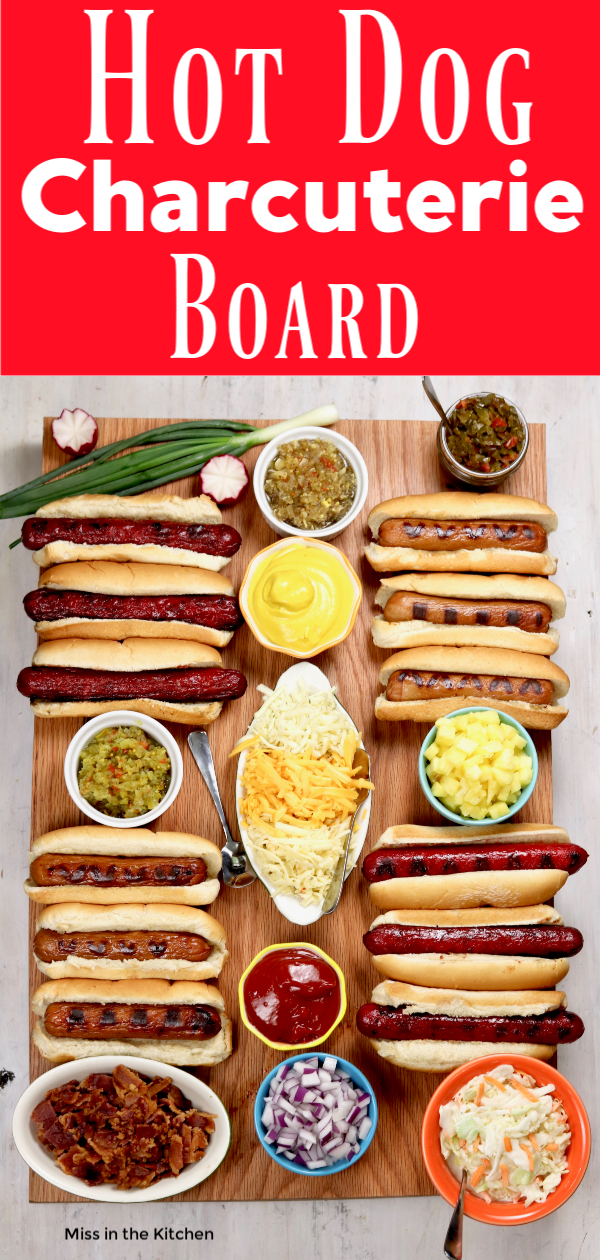 A Hot Dog Charcuterie Board is a great addition to summer cookouts, holidays and game day get togethers. Set up your board with delicious grilled hot dogs and creative toppings for an easy way to serve your guests.