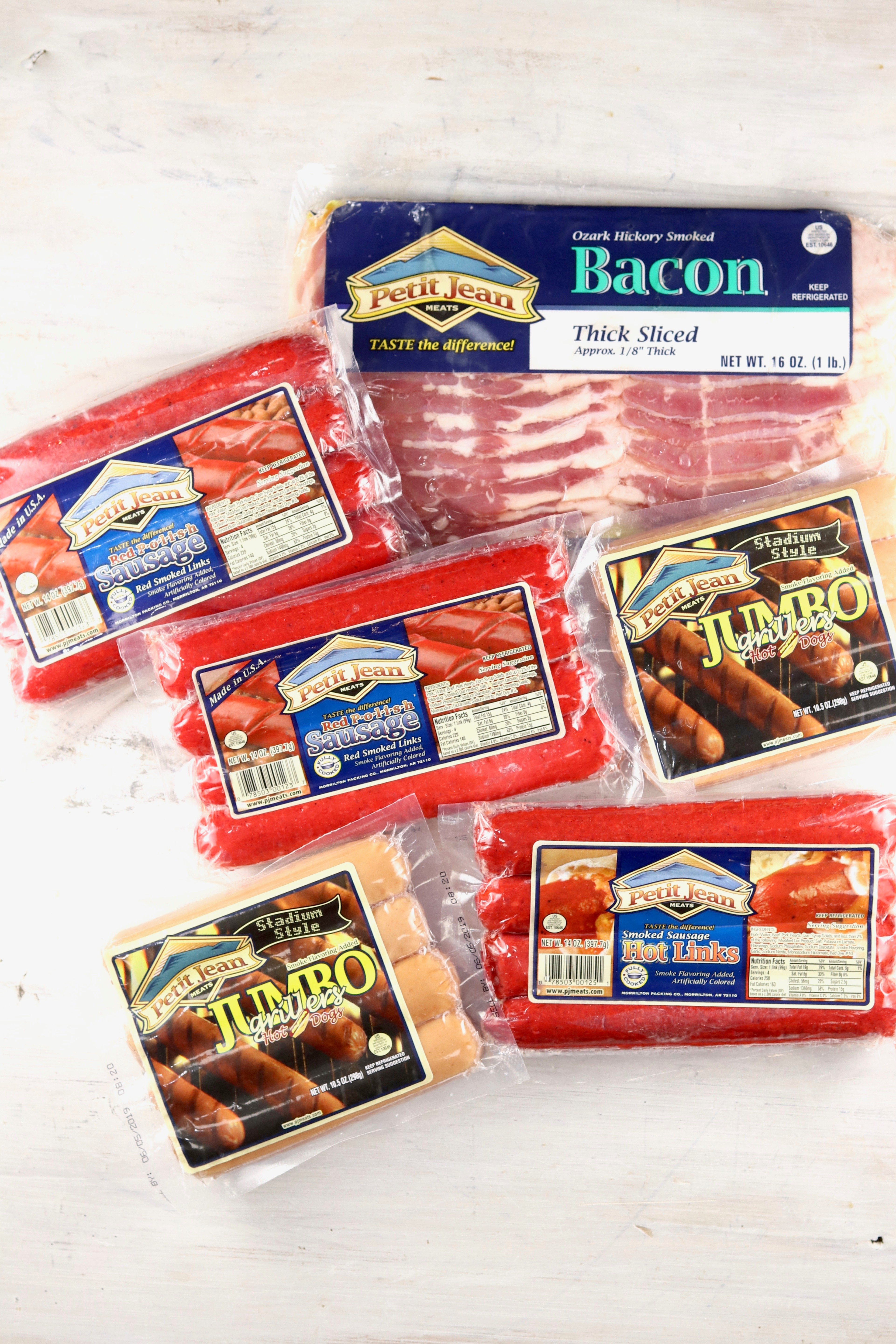 I am an ambassador for Petit Jean Meats. They provided me with the hot dogs, hot links, smoked sausages, bacon, and cheese for recipe development purposes, but I was not compensated for this post.