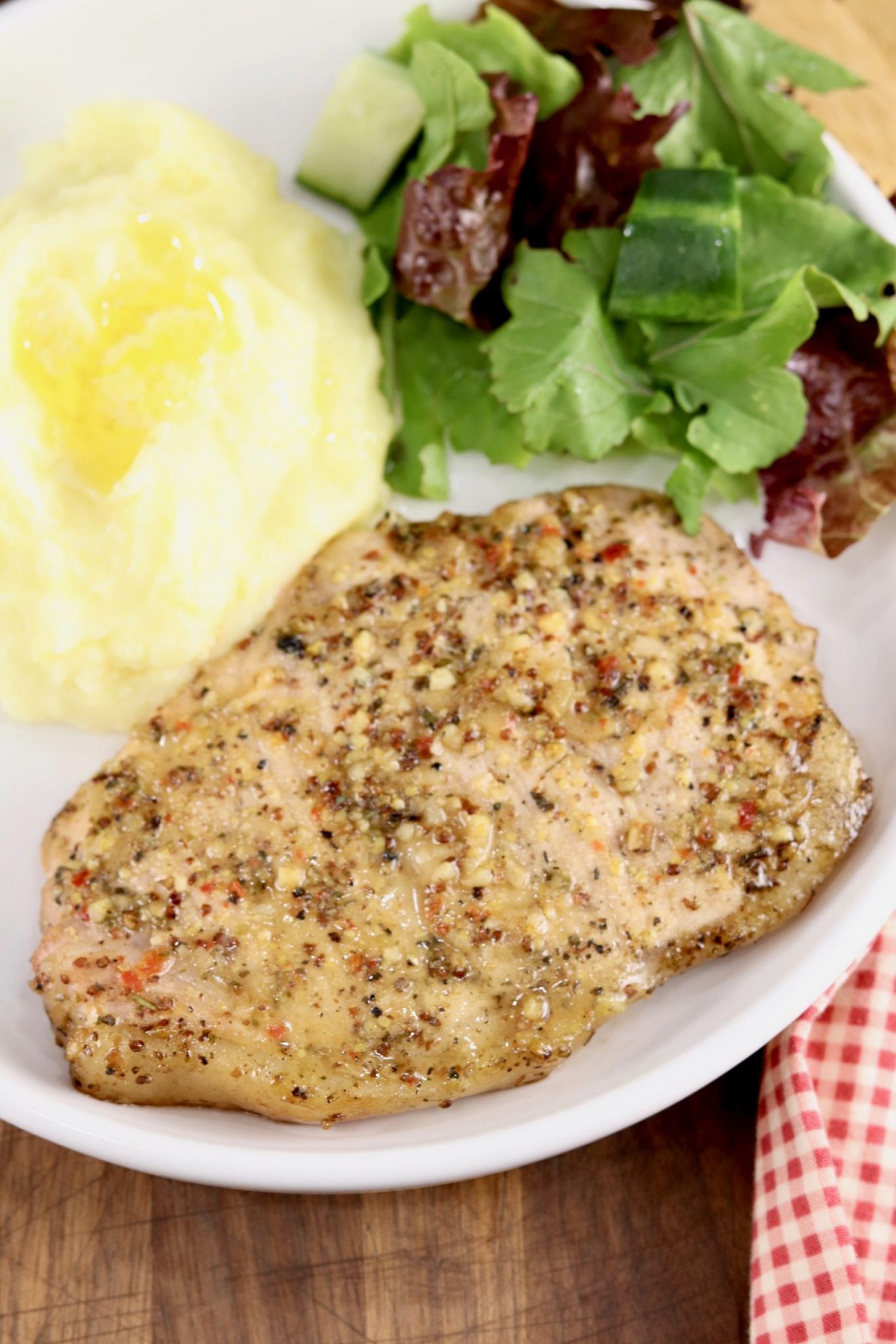 Easy dinners are my favorite, especially when there’s not a ton of prep work and I can get it on the table pretty quickly. Boneless pork chops are just the ticket for an easy weeknight dinner.