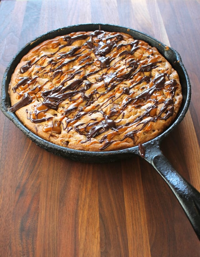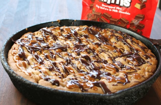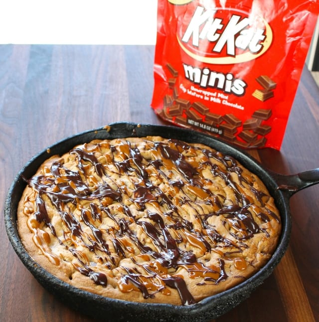 In the meantime pick up some Kit Kat Bites, try not to eat them all and bake these cookies! If you don’t have a cast iron skillet in your kitchen, you should pick one up! They are the handiest and most durable thing you can get!