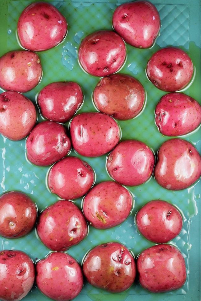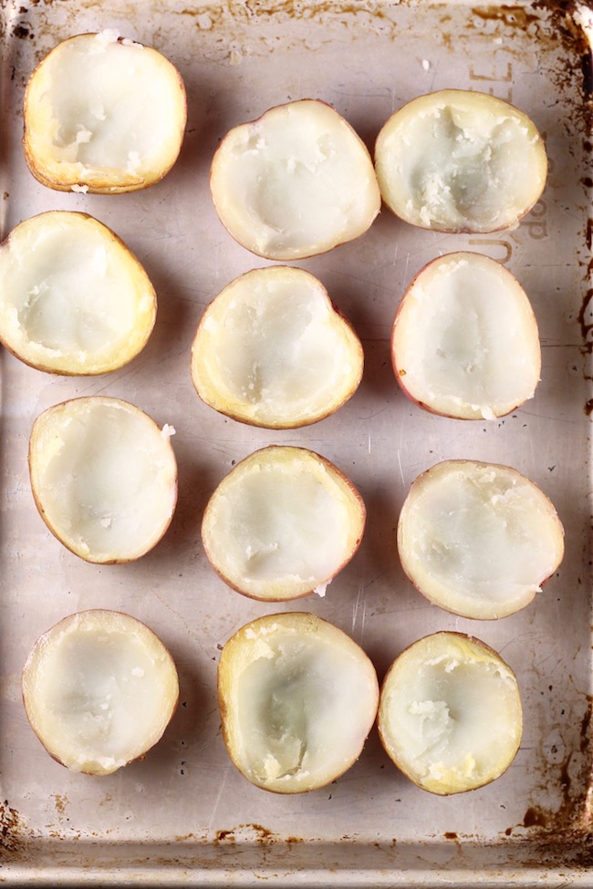 - Cutting the potatoes in half will make them cook faster, saving you some time in the kitchen.