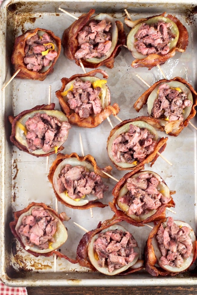 There are lots of ways to stuff potato skins but I’m telling you these Loaded Potato Skins are going to blow your mind. We used a smoked roast beef, (get the step by step recipe) but you could use, chopped steak, ground beef or whatever you have on hand. Although, I highly recommend the smoked roast beef.