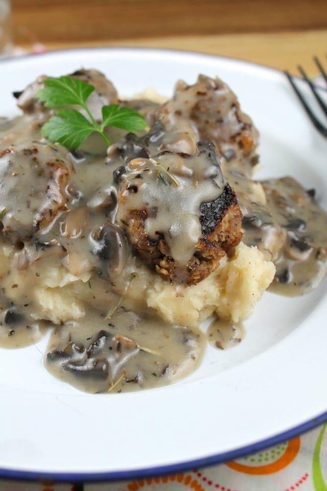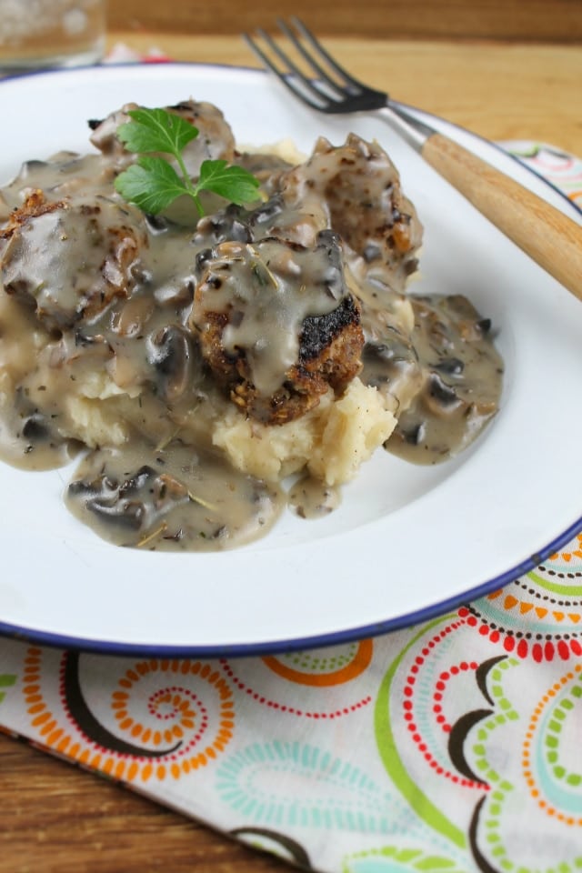 Classic comfort food of Meatballs and Creamy Mushroom Gravy perfect for dinners around the family table.