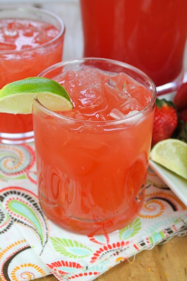 Easy Strawberry Limeade Punch ~ My favorite drink from Sonic has always been a strawberry limeade and making them at home is even better! I take a major shortcut with this 3 ingredient punch with frozen cocktail mixers and add in ginger ale and no alcohol.