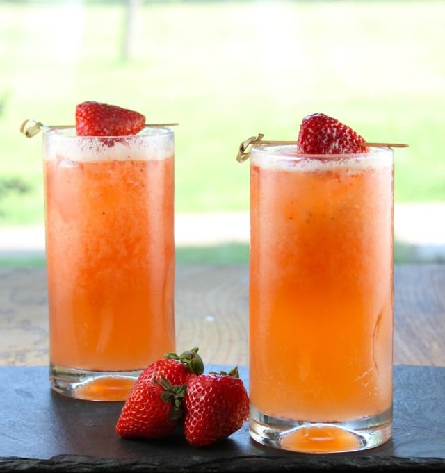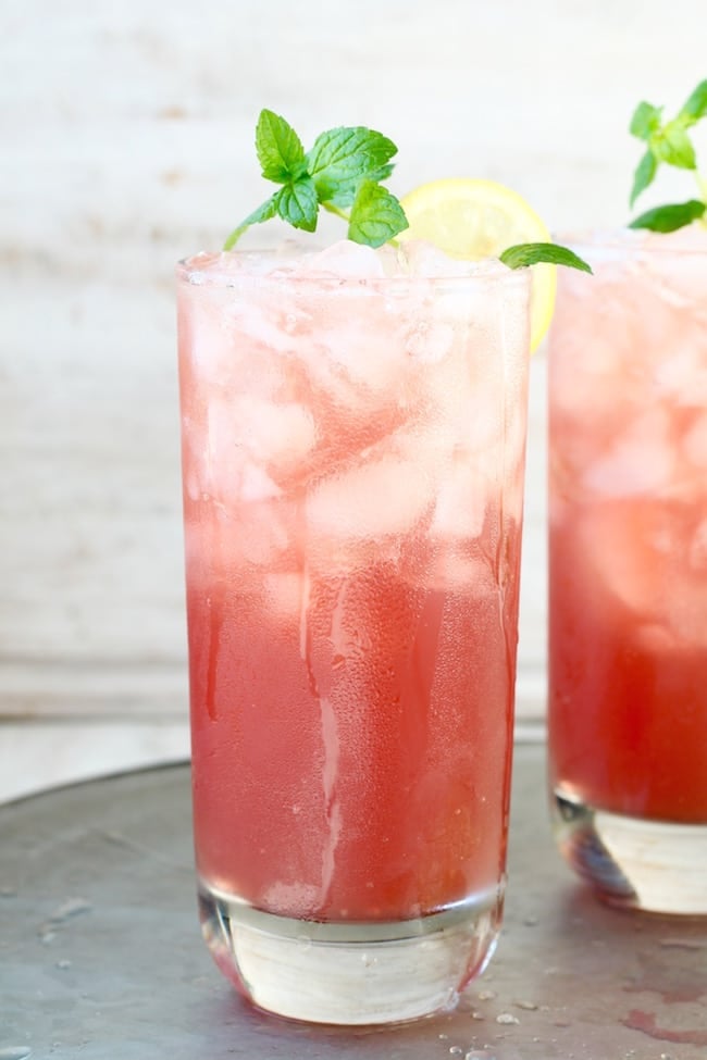 Strawberry Mango Coolers ~ This refreshing drink is sweetened with fresh mango and summer berries plus a dash of honey. It is beyond delicious on a hot summer day.