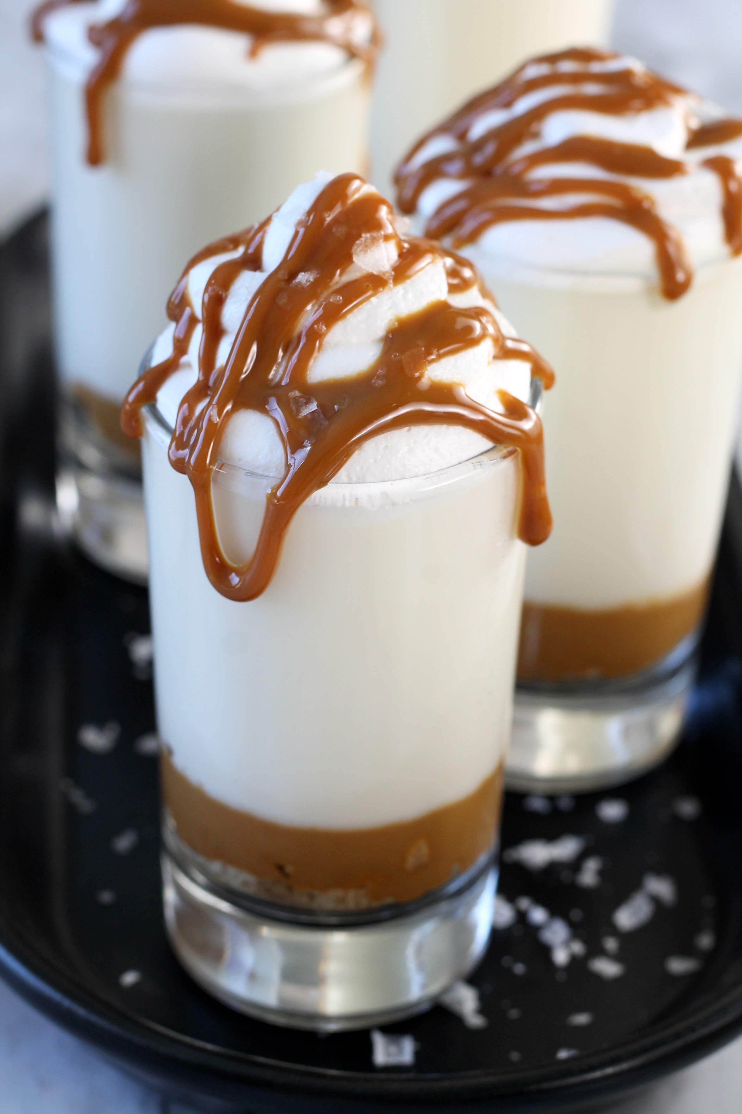 - Drizzle with caramel and a pinch of flaked sea salt.