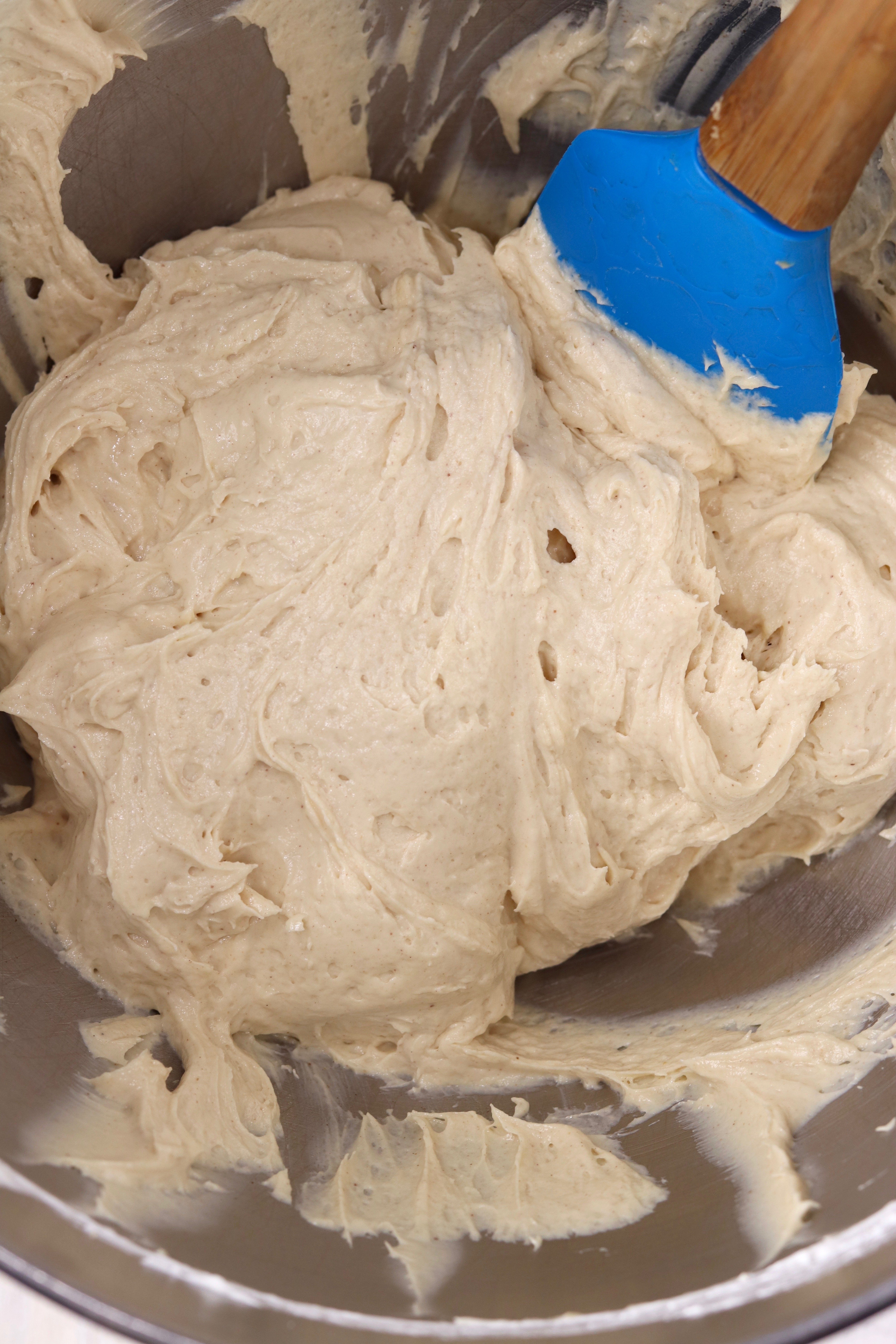 - Add softened cream cheese, peanut butter and powdered sugar to a mixing bowl and beat until creamy, scraping down sides.